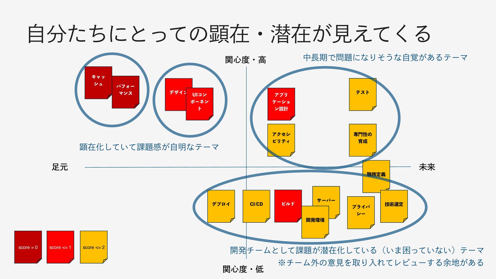 σβΠϯ 6*ίϯ ϙʔωϯ τ ΞϓϦ έʔγϣ ϯઃܭ Ϗϧυ σϓϩΠ $*$% ςετ αʔόʔ ઐੑͷ ҭ ৬ఆٛ ٕज़બఆ ։ൃڥ ϓϥΠό γʔ score = 0 score <= 1 score <= 2 ࣗͨͪʹͱͬͯͷݦࡏɾજࡏ͕ݟ͑ͯ͘Δ ݦࡏԽ͍ͯͯ͠՝ײ͕ࣗ໌ͳςʔϚ தظͰʹͳΓͦ͏ͳ͕֮ࣗ͋ΔςʔϚ ։ൃνʔϜͱͯ͠՝͕જࡏԽ͍ͯ͠Δʢ͍·ࠔ͍ͬͯͳ͍ʣςʔϚ ˞νʔϜ֎ͷҙݟΛऔΓೖΕͯϨϏϡʔ͢Δ༨͕͋Δ
