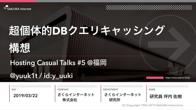 ݸମతDBΫΤϦΩϟογϯά ߏ 2019/03/22 ݚڀһ ௶ ༎थ Hosting Casual Talks #5 @Ԭ @yuuk1t / id:y_uuki