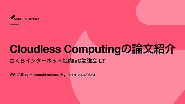 ௶ ༎थ (y-tsubouchi.sakura, @yuuk1t) 2024/06/24 Cloudless Computingͷจհ ͘͞ΒΠϯλʔωοτࣾIaCษڧձ LT