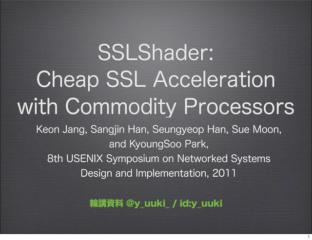 ඦݸͷίΞΛ͍ͪͯɼ34"ɼ"&4͓Αͼ4)"ͳͲͷ҉߸Խ ΞϧΰϦζϜΛฒྻॲཧ͢Δ ‣ ඦNT͔Βඵ͔͚ͯ34"ͷੑೳΛ࠷େԽ͢ΔΑ͏ͳطଘͷख๏ ͰϨΠςϯγ͕େ͖͗͢Δ ‣ ϨΠςϯγͰεϧʔϓοτΛ࠷େԽ͢Δख๏ΛఏҊ͢Δ ‣ 44-4IBEFS(16Λ༻͍ͨ44-ϓϩΩγͷ࡞ ‣ ϚϧνίΞ$16/6."ɼ"&4/*ʹରԠ 2013/4/17 ɹɹɹɹɹɹɹɹɹɹɹɹɹɹɹɹɹɹɹɹɹྠߨ 4
