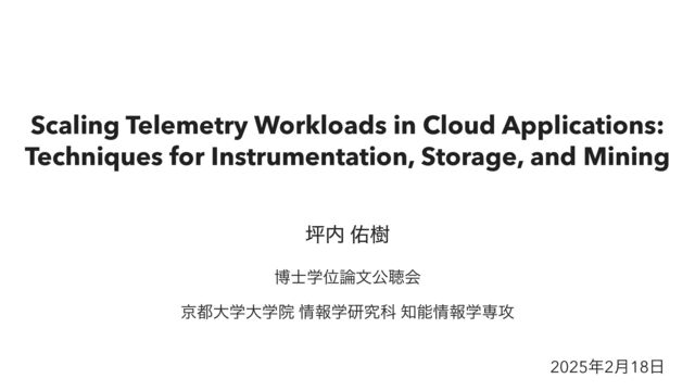 TCP/UDP Socket-based Tracing for Discovering Network Services Dependencies, Journal of Information Processing (JIP), Vol.30, pp.260-268, March 2022. ݚڀۀɹจࢽɾࠃࡍձٞ จࢽ ࠃࡍձٞ ɾ Y. Tsubouchi, M. Furukawa, R. Matsumoto, Transtracer: Socket-Based Tracing of Network Dependencies among Processes in Distributed Applications, The 1st IEEE International COMPSAC Workshop on Advanced IoT Computing (AIOT 2020), July 2020. ɾ ௶༎थ, ࡔேਓ, ᖛా݈, দխ, খྛོߒ, Ѩ෦ത, দຊ྄հ, HeteroTSDB: ҟछࢄKVSؒͷࣗ ಈ֊ԽʹΑΔߴੑೳͳ࣌ܥྻσʔλϕʔε, ใॲཧֶձจࢽ, Vol.62, No.3, pp.818-828, 20213݄. ɾ Y. Tsubouchi, A. Wakisaka, K. Hamada, M. Matsuki, H. Abe, R. Matsumoto, HeteroTSDB: An Extensible Time Series Database for Automatically Tiering on Heterogeneous Key-Value Stores, The 43rd Annual IEEE International Computers, Software & Applications Conference (COMPSAC), pp. 264-269, July 2019. ɾ ௶༎थ, ҏจ, ஔాਅੜ, ࢁ૱, ദַ, ഡݪ݉Ұ, ॏෳഉআετϨʔδͷͨΊͷSHA-1ܭࢉγεςϜͷ SSE໋ྩʹΑΔߴεϧʔϓοτԽ, ిࢠใ௨৴ֶձจࢽ D, 96(10), pp.2101-2109 201310݄. ɾ Y. Tsubouchi and H. Tsuruta, MetricSifter: Feature Reduction of Multivariate Time Series Data for Ef fi cient Fault Localization in Cloud Applications, IEEE Access, Vol. 12, pp. 37398-37417, March 2024. ʢߩݙ̎ʣ ʢߩݙ̍ʣ ʢߩݙ̏ʣ ʢߩݙ̍ʣ ʢߩݙ̎ʣ