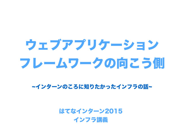 ウェブアプリケーションフレームワークの向こう側 / The other side of Web Application Frameworks