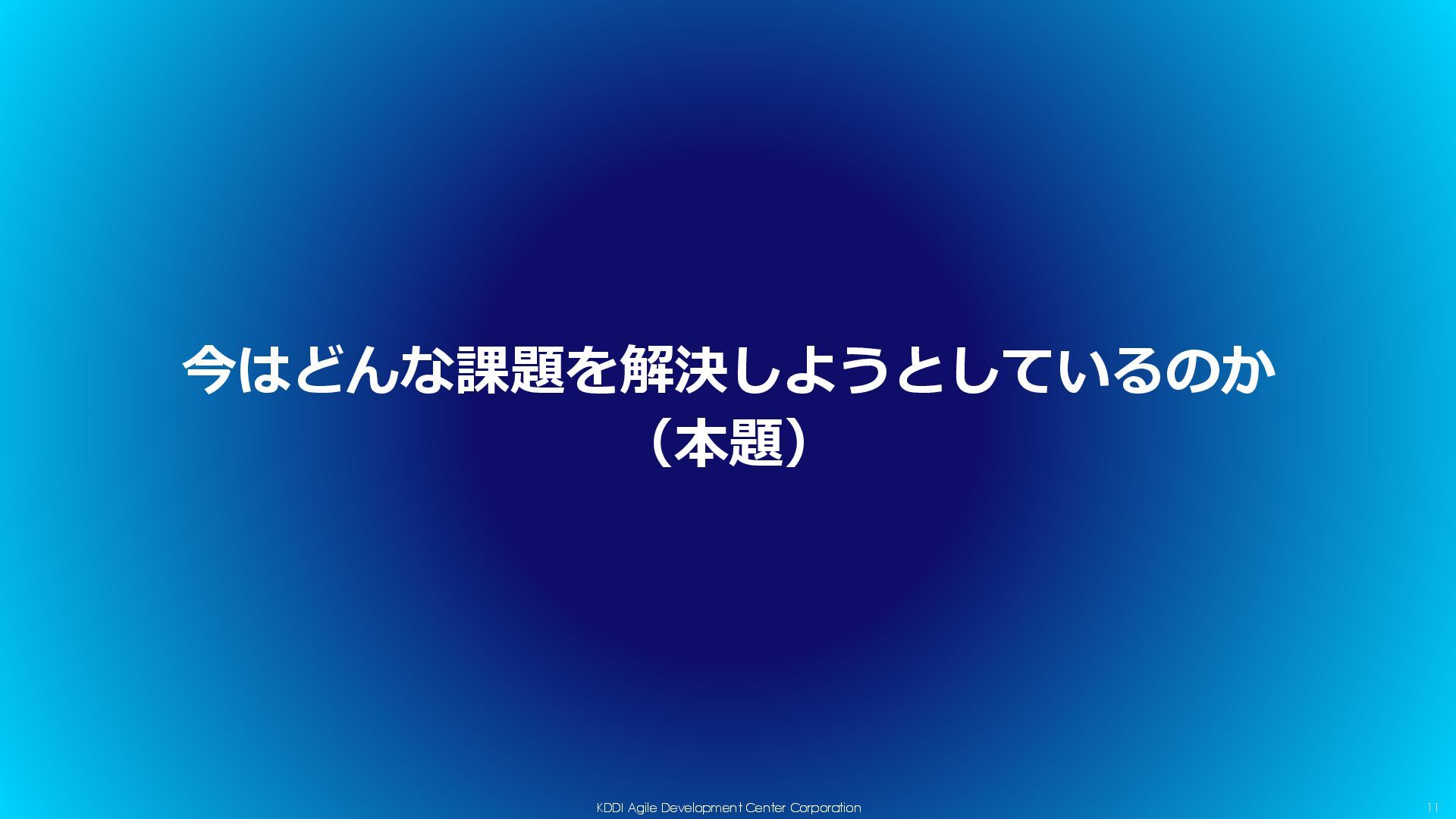 11 KDDI Agile Development Center Corporation 今はどんな課題を解決しようとしているのか (本題)
