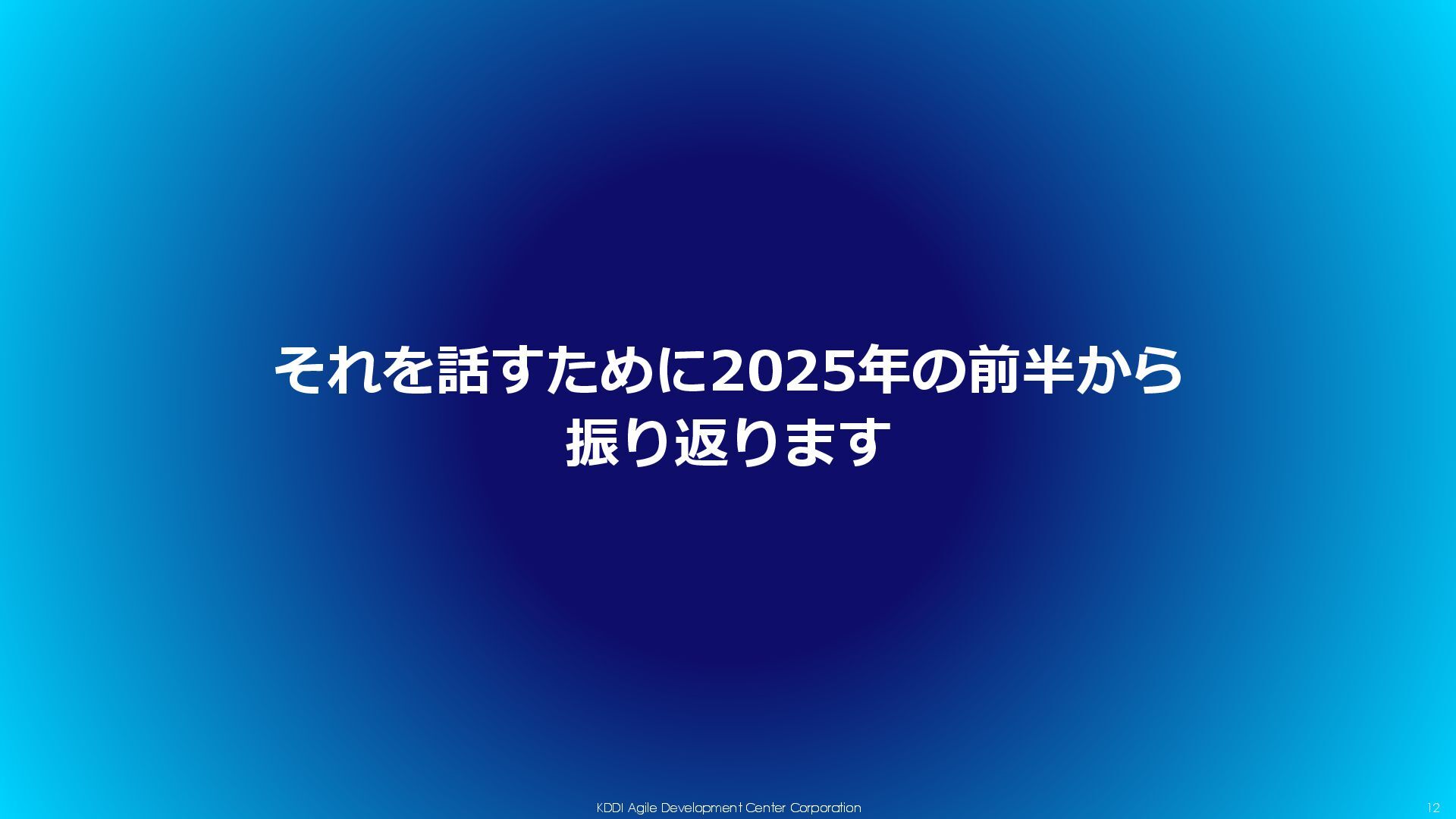 12 KDDI Agile Development Center Corporation それを話すために2025年の前半から 振り返ります