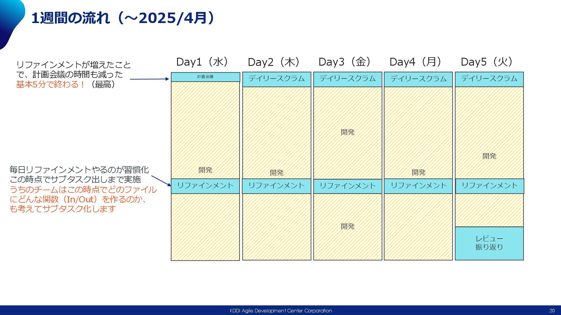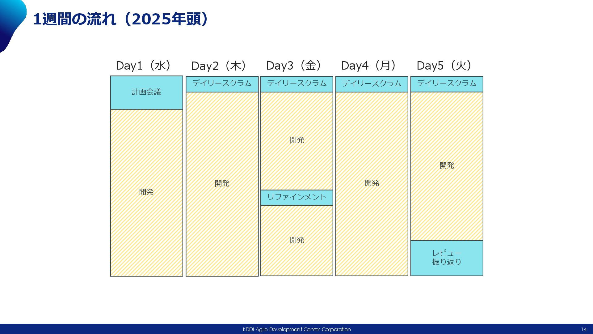 14 KDDI Agile Development Center Corporation 1週間の流れ(2025年頭) Day1(水) Day2(木) Day3(金)