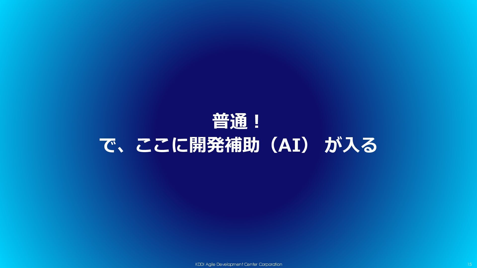 15 KDDI Agile Development Center Corporation 普通! で、ここに開発補助(AI) が入る