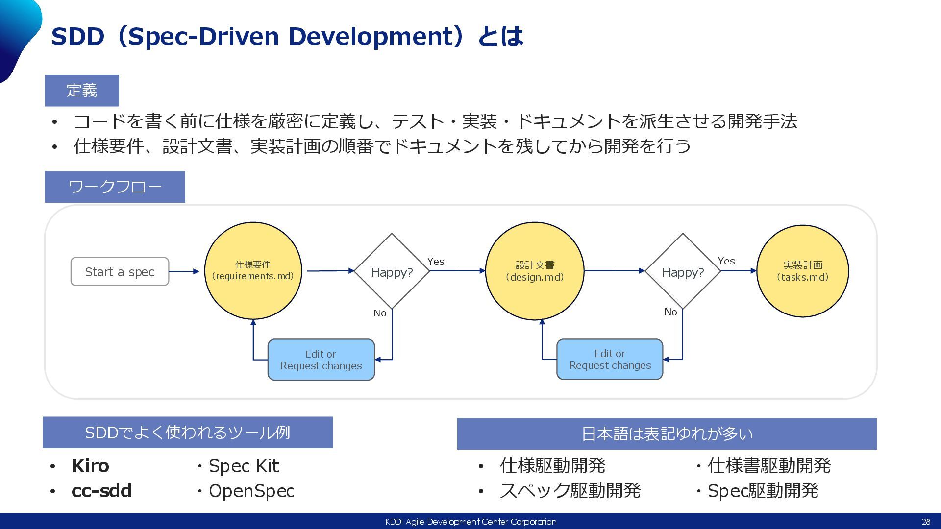 28 KDDI Agile Development Center Corporation SDD(Spec-Driven Development)とは 定義 ワークフロー