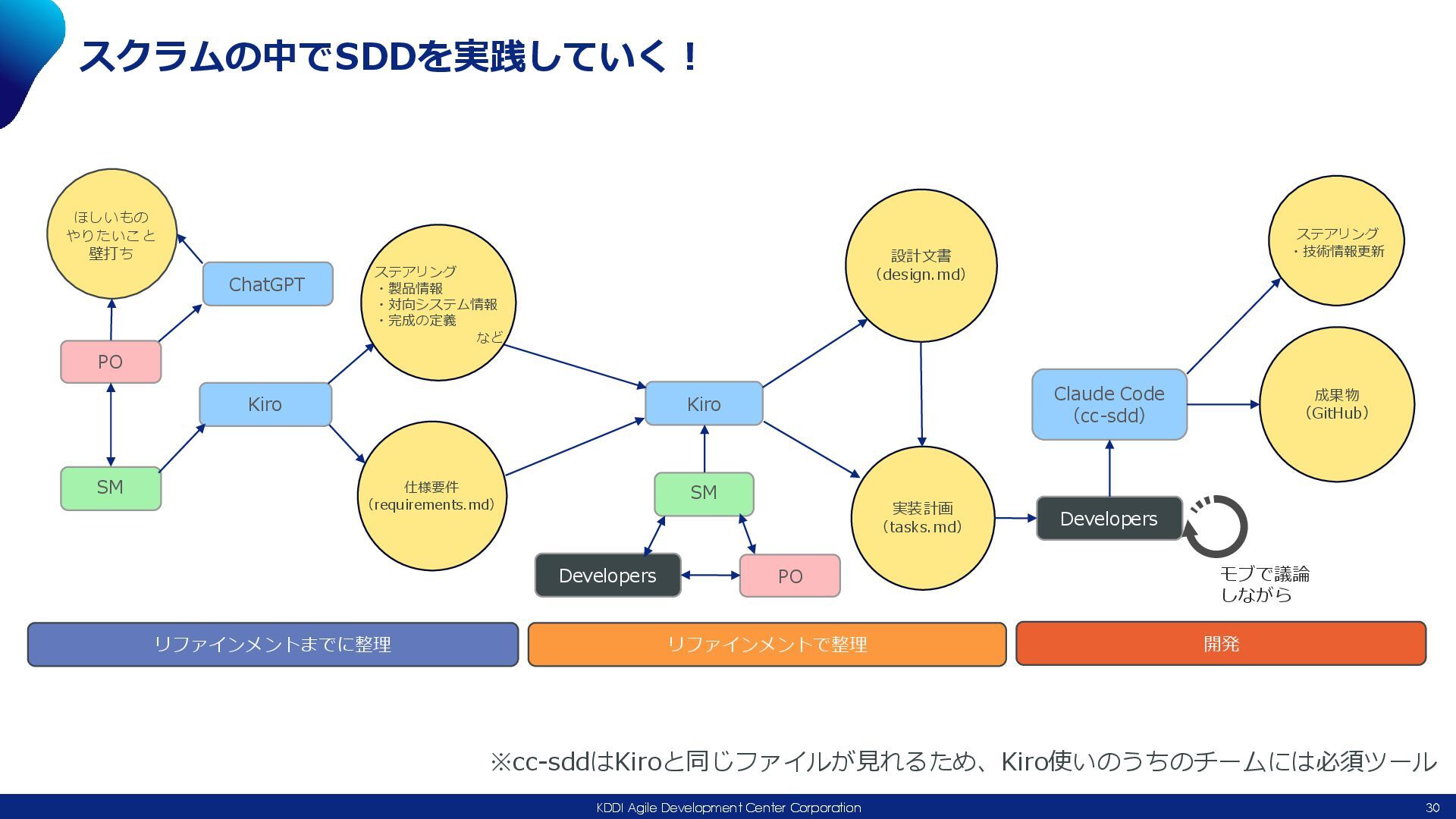 30 KDDI Agile Development Center Corporation スクラムの中でSDDを実践していく! PO リファインメントまでに整理 リファインメントで整理