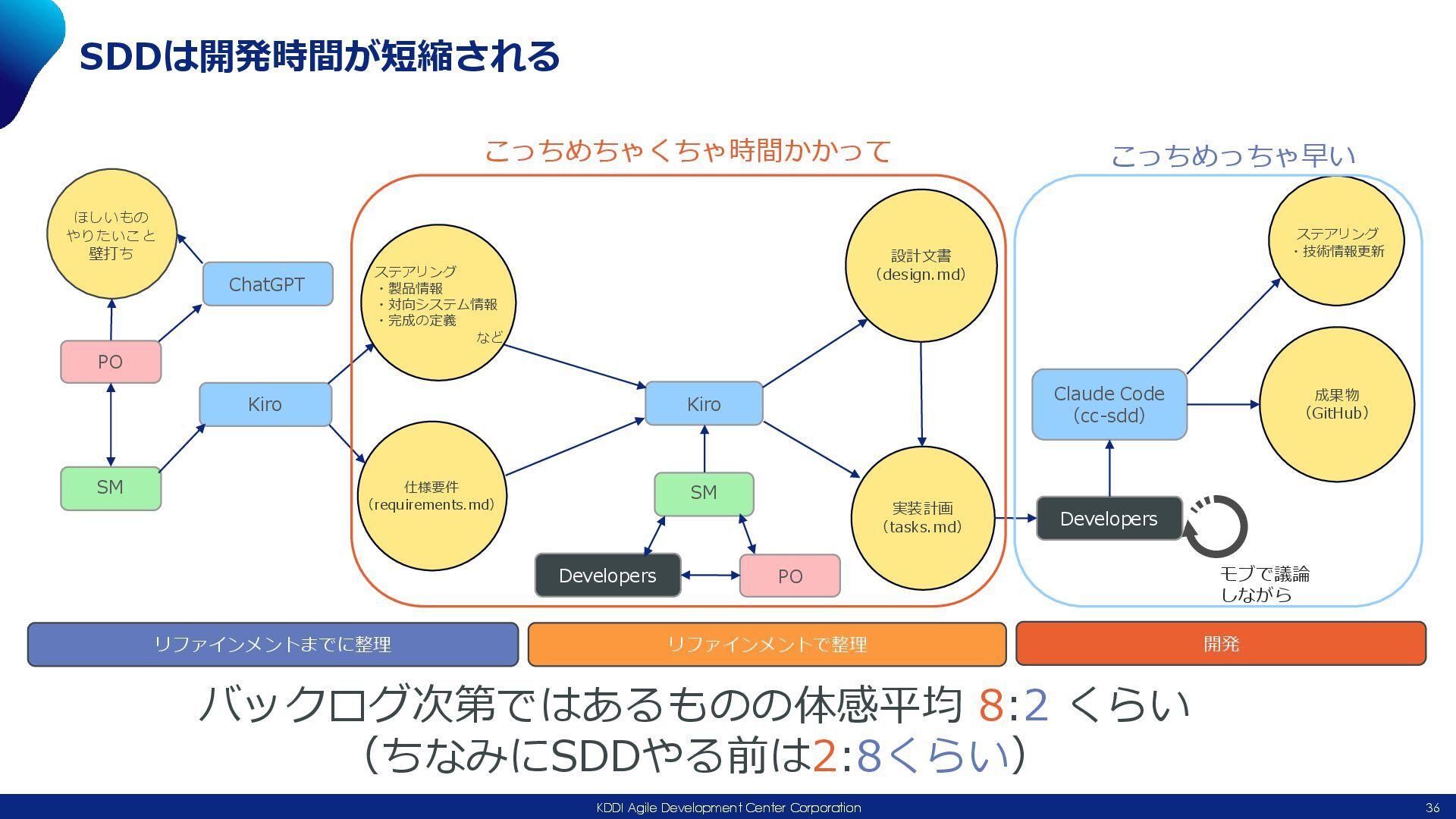 36 KDDI Agile Development Center Corporation SDDは開発時間が短縮される PO リファインメントまでに整理 リファインメントで整理