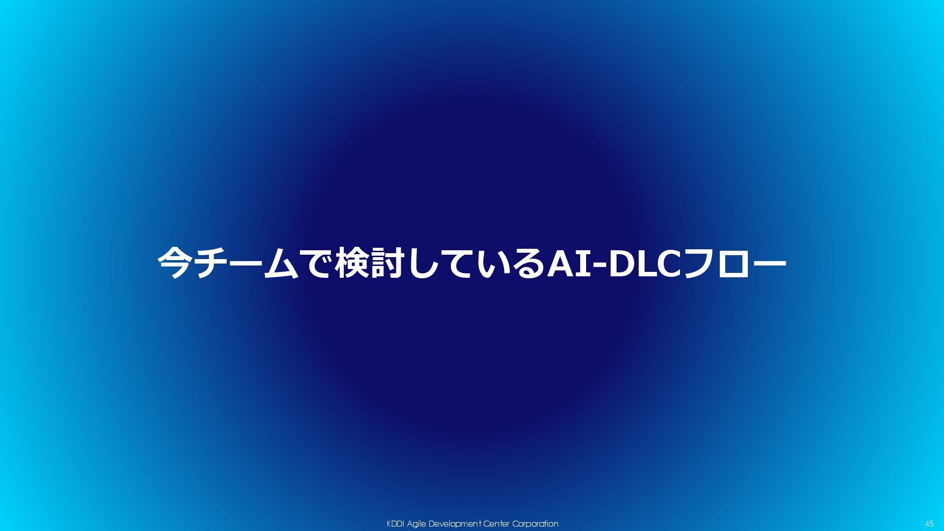 45 KDDI Agile Development Center Corporation 今チームで検討しているAI-DLCフロー