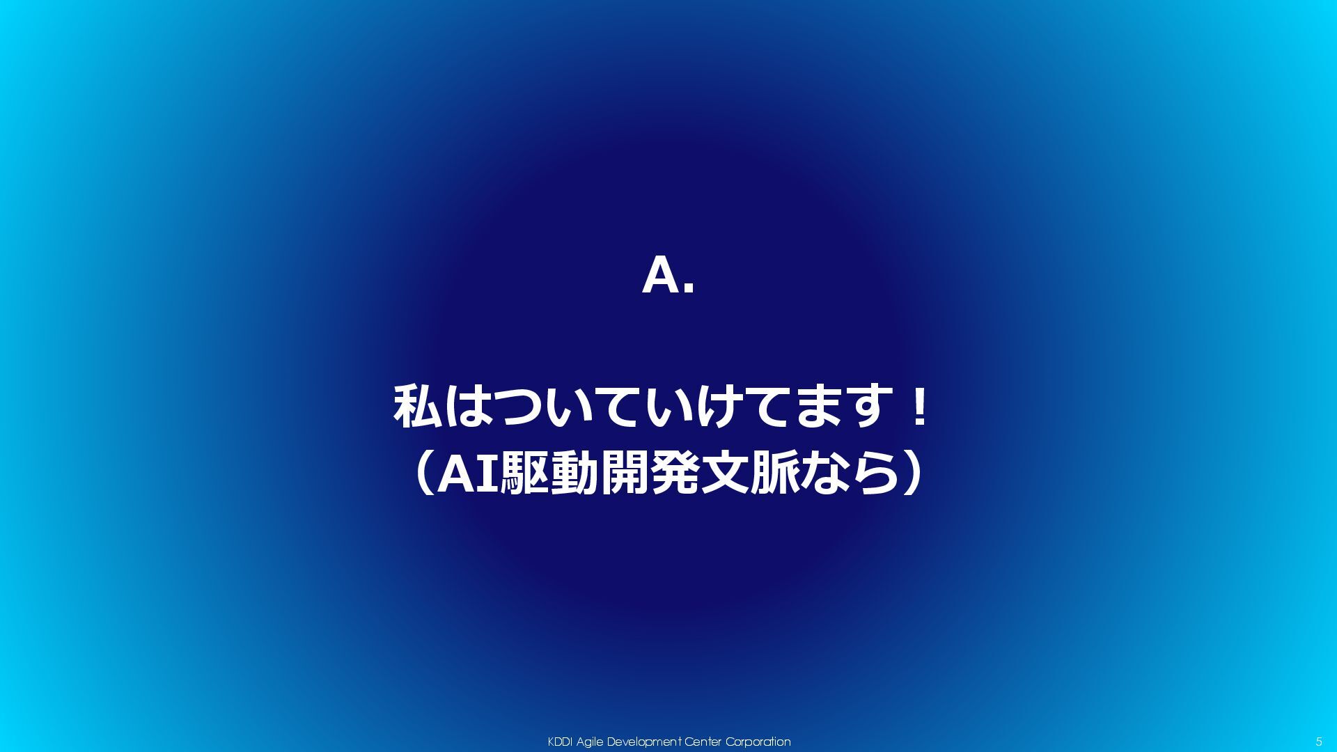 5 KDDI Agile Development Center Corporation A. 私はついていけてます! (AI駆動開発文脈なら)