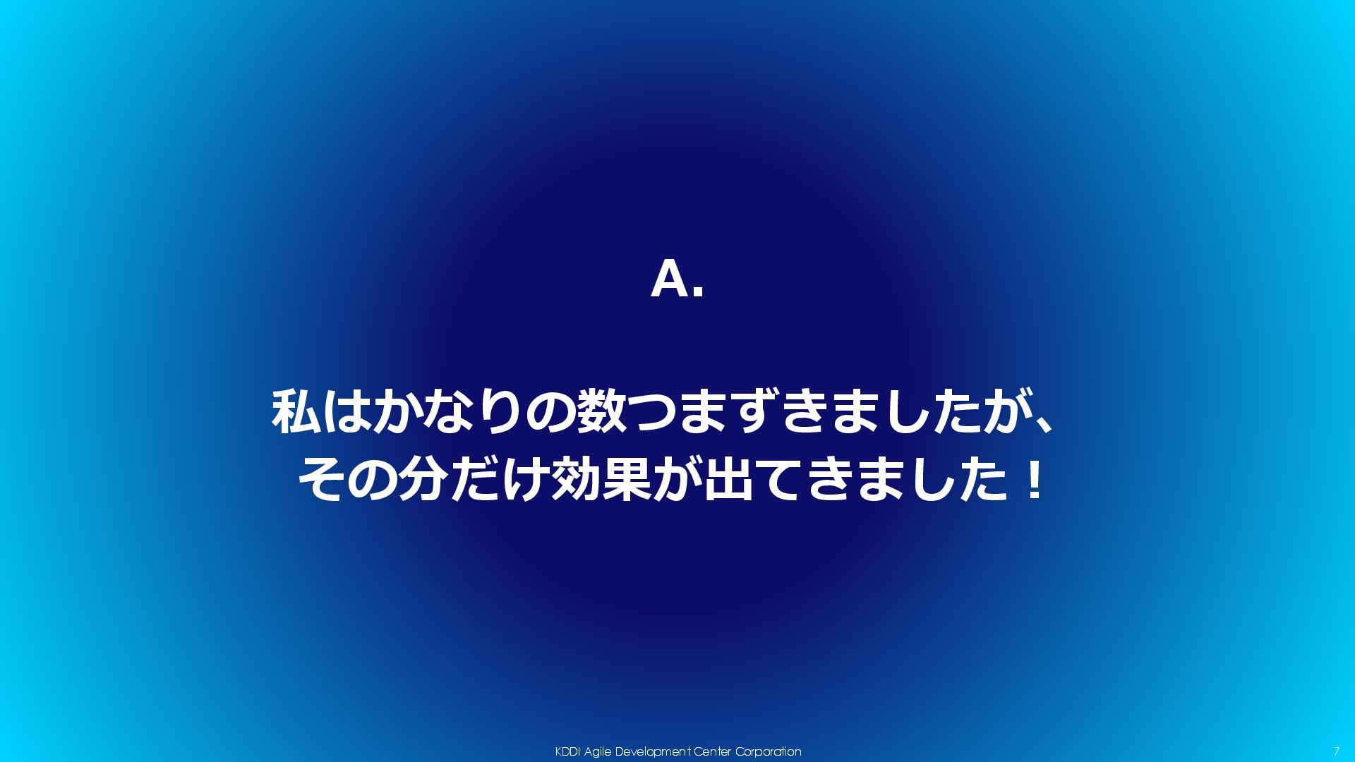 7 KDDI Agile Development Center Corporation A. 私はかなりの数つまずきましたが、 その分だけ効果が出てきました!