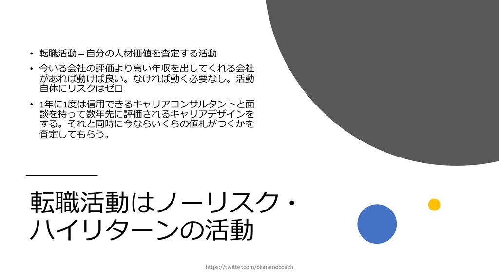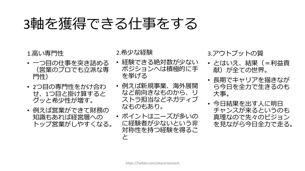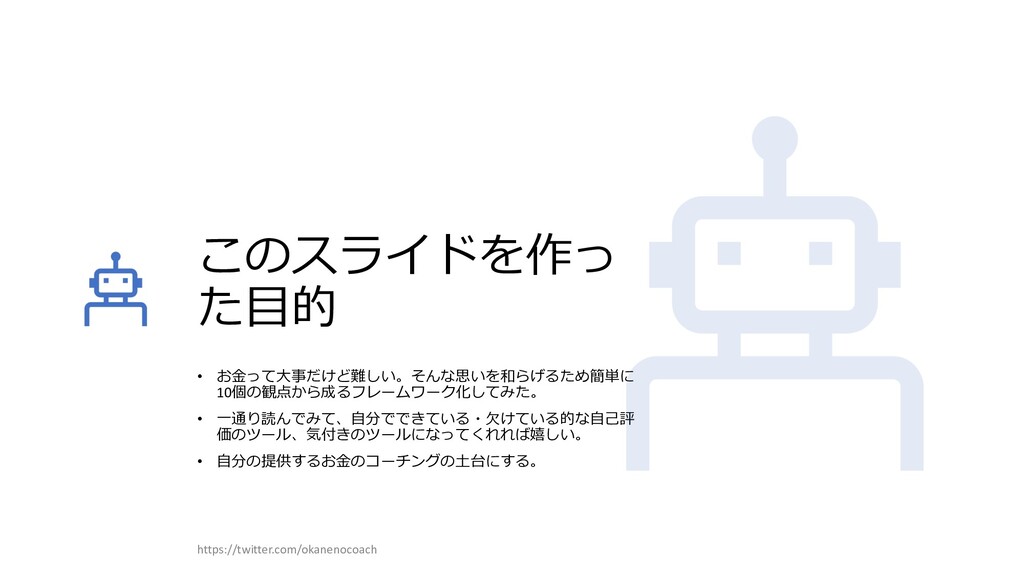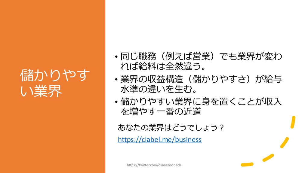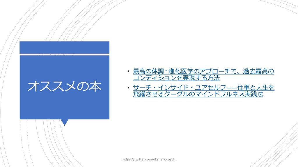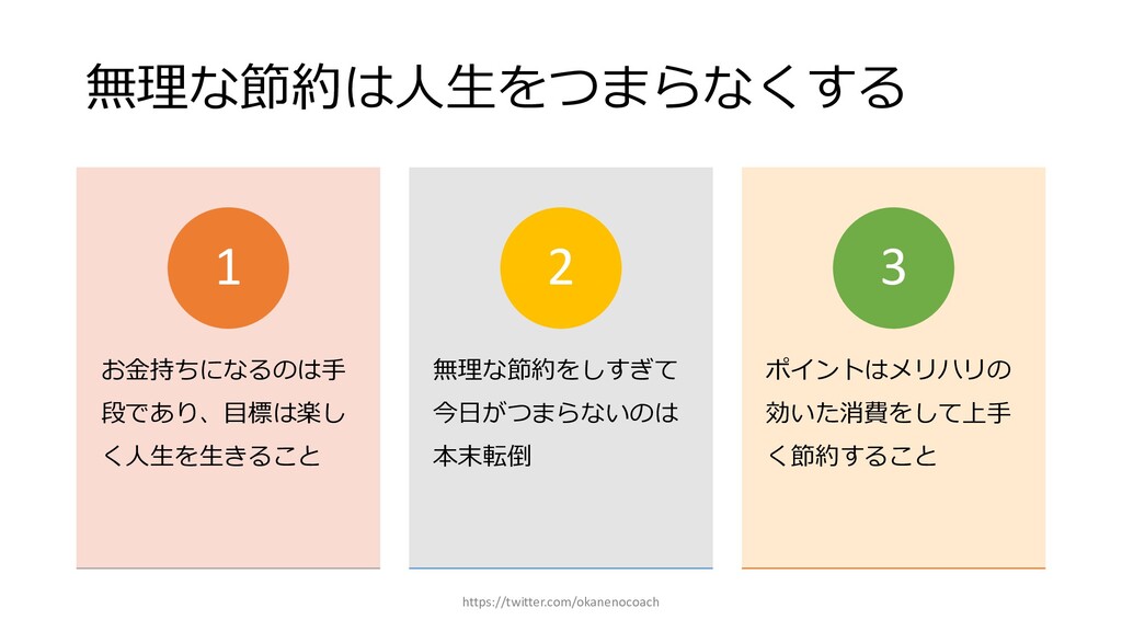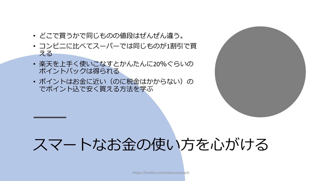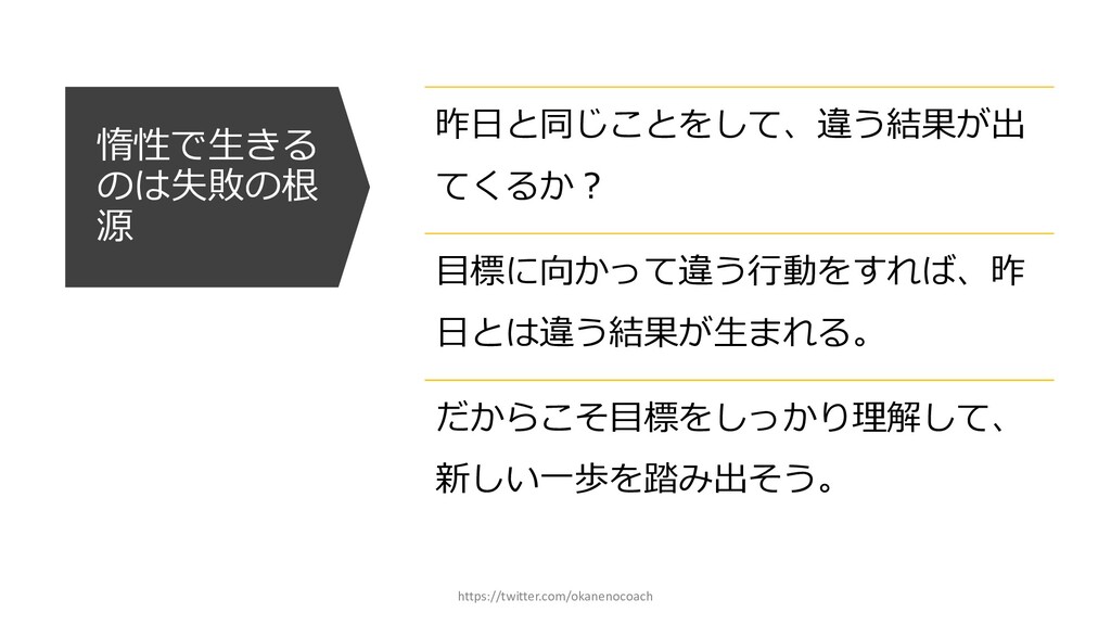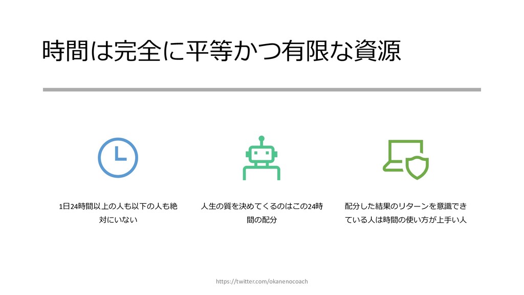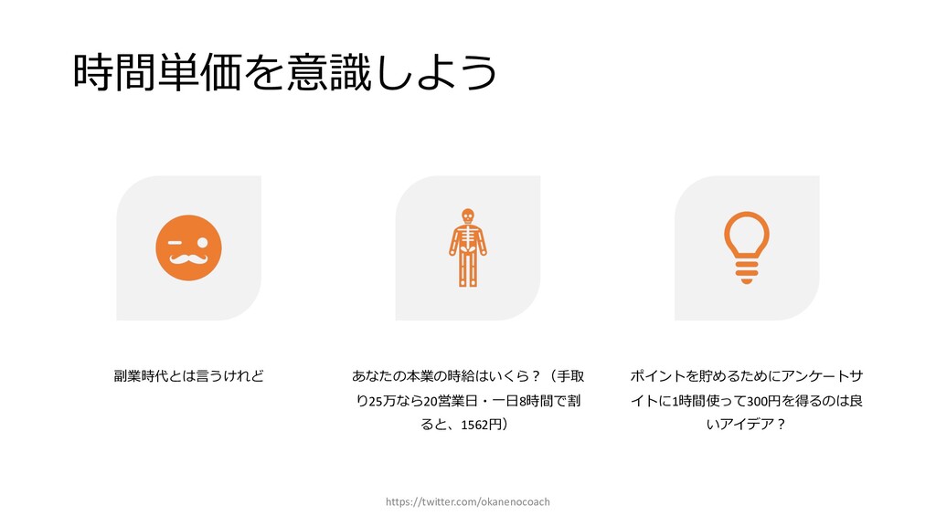 円 純資産 (資産ー 借⾦) 350万円 2019年12⽉31⽇ の貸借対照表 個⼈の場合 ⾦額 売上 お給料 投資からの利益 500万円 売上原価 (数値化できないけ ど時間という原価が かかってます) 0円 固定費(あまり⾦額 がぶれないもの) 家賃、携帯電話、⽔ 道光熱費、借⾦返済 200万円(うち奨学 ⾦5万円を返済) 変動費(ある程度コ ントロール可能な費 ⽤) ⾷費、趣味 200万円 税⾦ 所得税・社会保険料 など 50万円 最終利益 50万円 資産 貯⾦250万 円(去年 の200万円 +今年の 50万円) 投資信託 200万円 負債(借 ⾦) 奨学⾦返 済 45万 円(去年 より5万円 減っ た︕) 純資産 (資産ー 借⾦) 415万円 2020年12⽉31⽇ の貸借対照表 2020年1⽉1⽇〜12⽉31⽇の損益計算書 毎⽉余ったお⾦は全て貯⾦に回してたとすると︖ 資産50万UP 負債5万円Down 正味去年より55万円資産が 増えた︕ 損益計算書と貸借対照表はこうやってつながっている https://twitter.com/okanenocoach