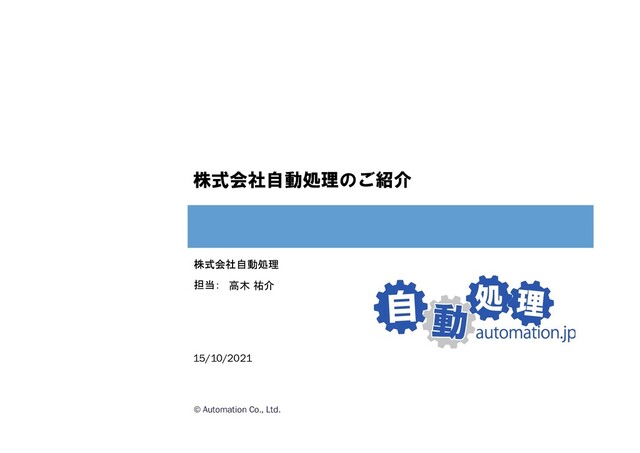 株式会社自動処理社の紹介資料です。2009年に操業して、こう見ると割といろんなことをしてきたなと思います。