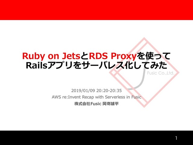 Ruby on JetsとRDS Proxyを使って Railsアプリをサーバレス化してみた 2019/01/09 20:20-20:35 AWS re:Invent Recap