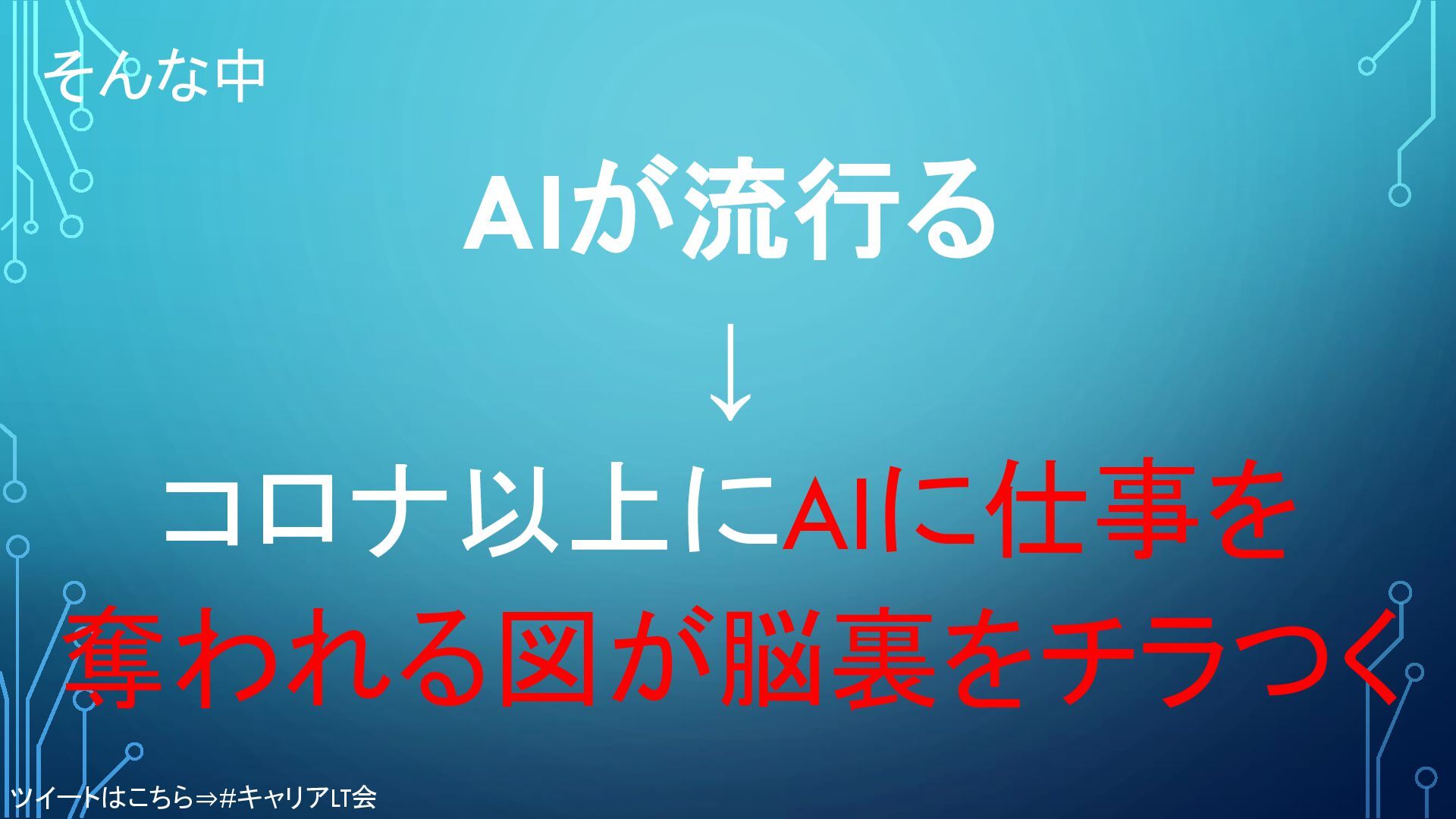 そんな中 AIが流行る ↓ コロナ以上にAIに仕事を 奪われる図が脳裏をチラつく ツイートはこちら⇒#キャリアLT会