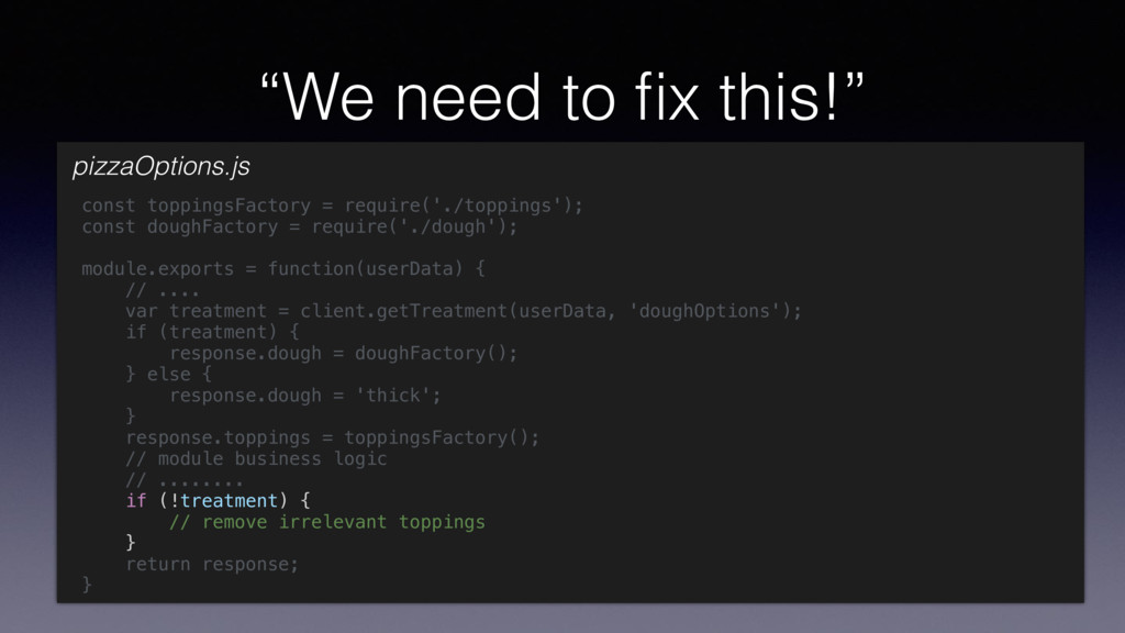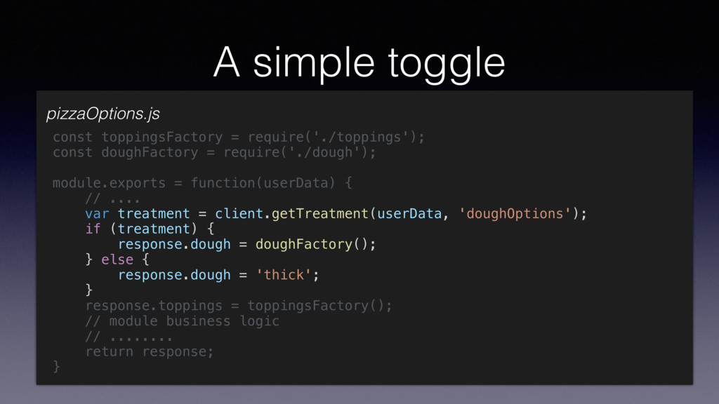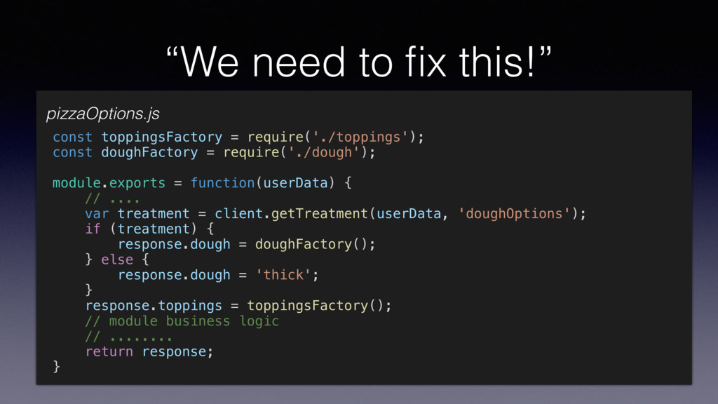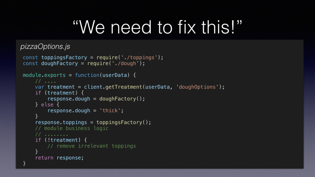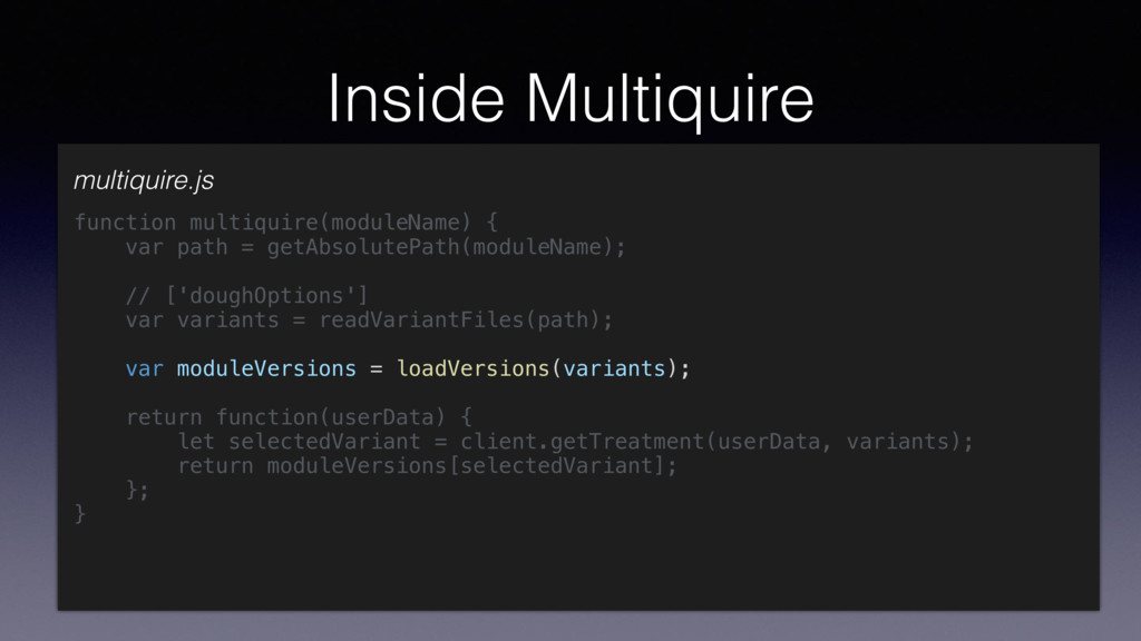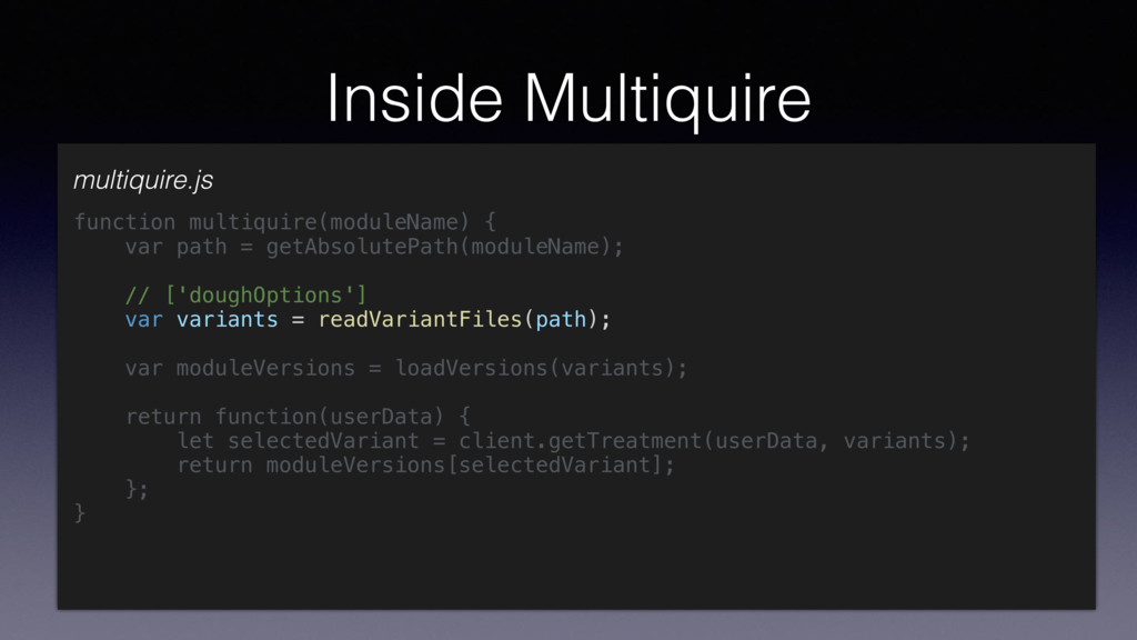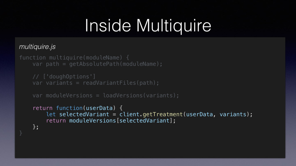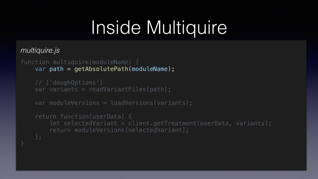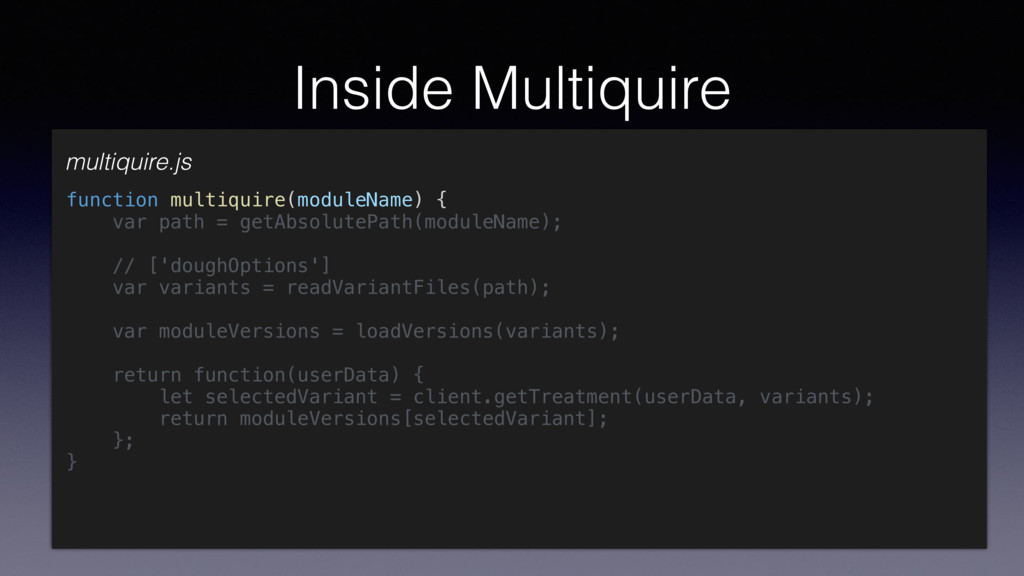 get messy if we’re not using abstraction layers to manage our branching • CommonJS already gives us a very good start point • Using multiquire we can create variation files and use the relevant file on runtime