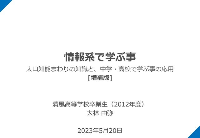 Singularity(技術的特異点) l When humans transcend biology with the power of technology l ⼈間が技術の⼒によって ⽣物学的な限界を超越する時 l 2045年問題(2029年問題) l ⼀部の職業がAI(⼈⼯知能)に置き換わる l BI(ベーシックインカム)が導⼊される l 脳や臓器が⼈⼯化・代替可能になる