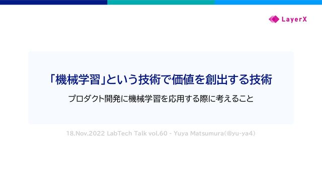 様々なコンテンツやクラウドサービスの充実により、機械学習という技術を利用するハードルは低くなりました。一方で、機械学習を用いて価値を生み出すことは容易ではありません。本勉強会では、プロダクト開発において「機械学習」という技術で価値を創出する技術について、バクラク請求書の実例とともにお話ししました。