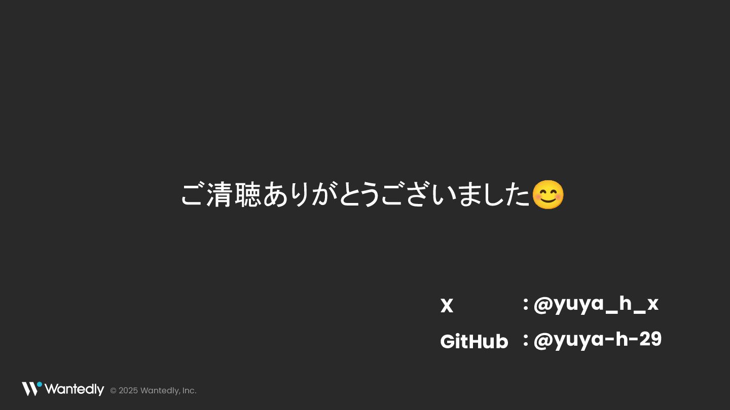 © 2025 Wantedly, Inc. ご清聴ありがとうございました😊 : @yuya_h_x : @yuya-h-29 X