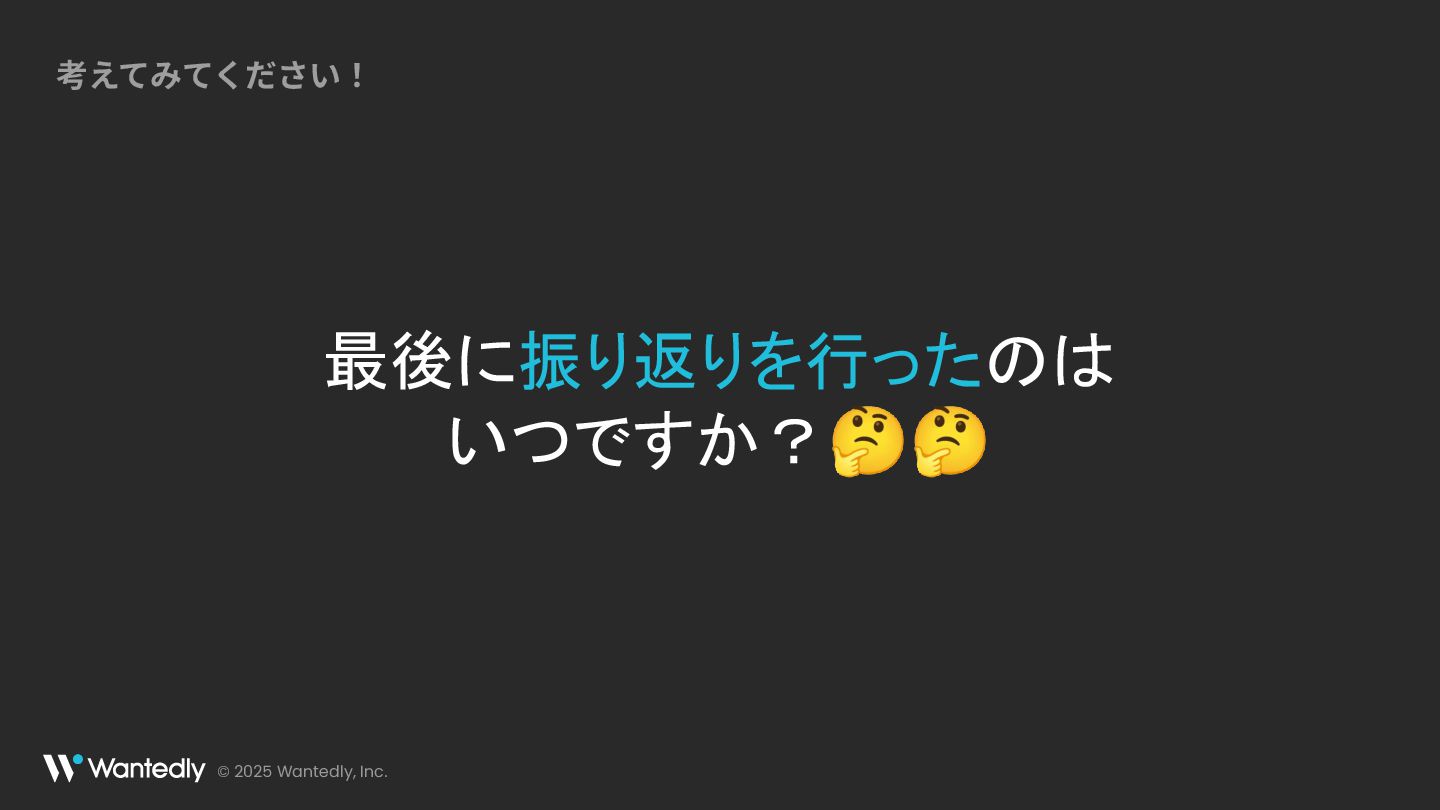 © 2025 Wantedly, Inc. 最後に振り返りを行ったのは いつですか?🤔🤔 考えてみてください!