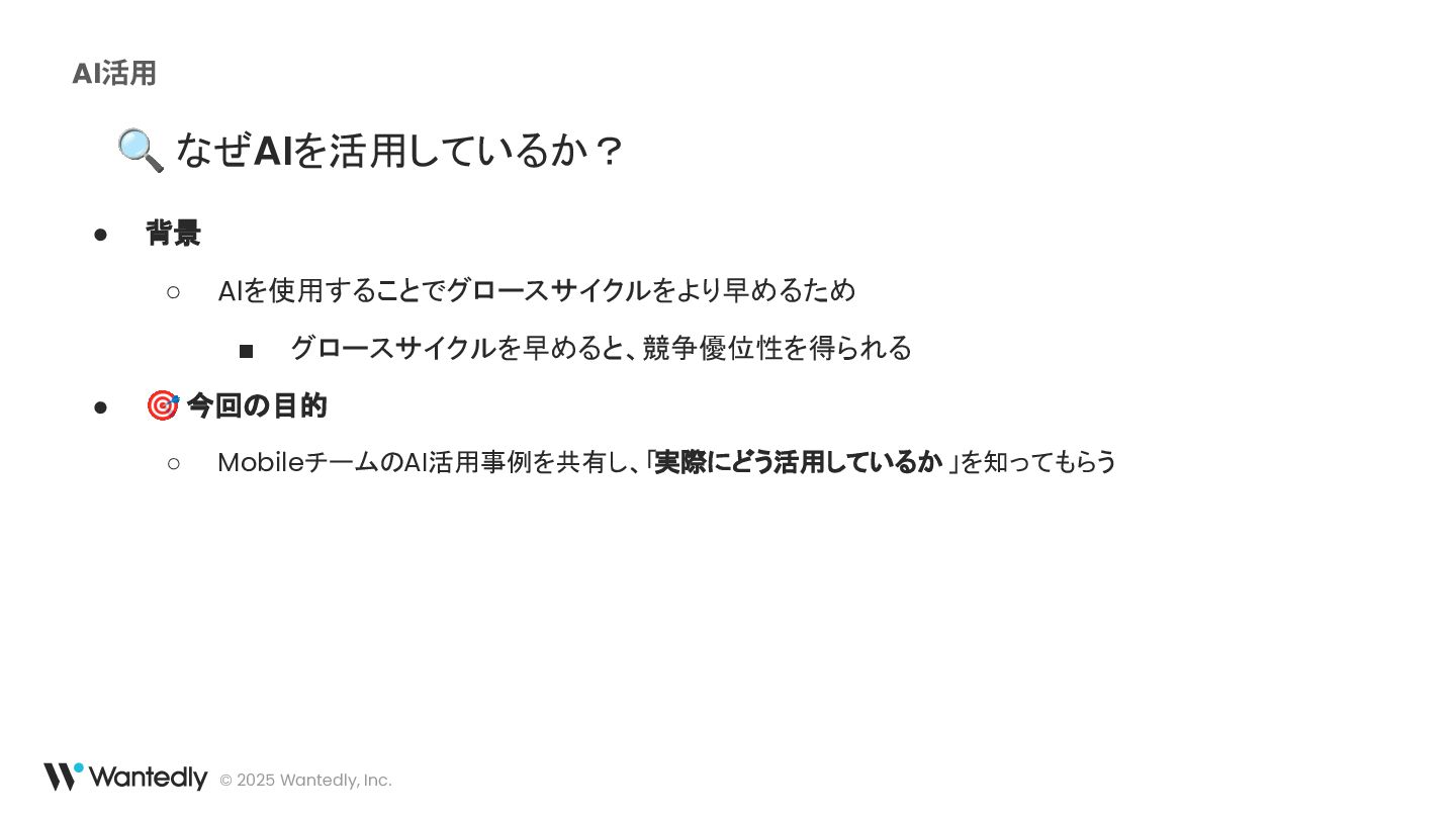 本セッションを通じて、弊社の事業内容とともに、AIが開発現場にもたらす変化や、エンジニアリング組織がAIをどのように活用しているかについて、皆様に広くお伝えできれば幸いです。