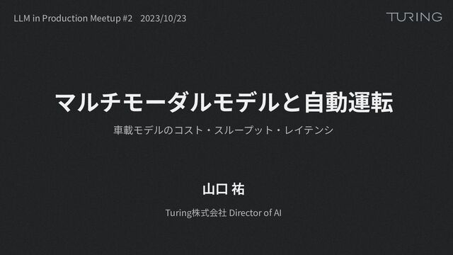@ AWS ◦ LoRAで学習させるだけでも百万円単位 • 分散並列学習の技術が重要 ◦ HPC的なインフラ + 並列技術 ◦ Turingでも⼤規模な設備投資を計画 • データセット ◦ 独⾃に⾛⾏データを6000時間取得 ◦ ⾃動運転のための⼤規模なVisual QAデータセット Wang, Guanhua, et. al. 2023. “ZeRO++: Extremely Efficient Collective Communication for Giant Model Training.” arXiv [cs.DC]. arXiv. http://arxiv.org/abs/2306.10209. DriveLMデータセット (https://github.com/OpenDriveLab/DriveLM) 7