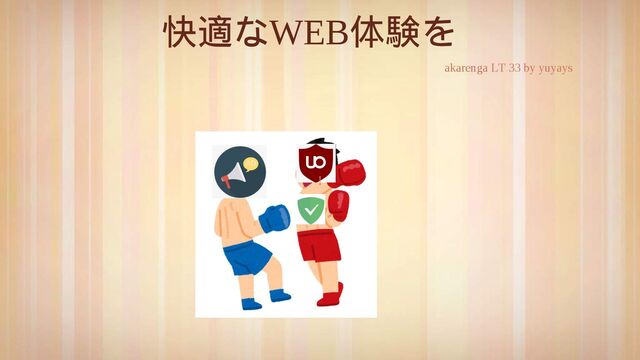 • 今現在でみなさんはどのようなブロッカ ー 等を 使用してますか • また現在のブラウザでの体験はどのようなもの ですか • あとでお話していただくとありがたいです!