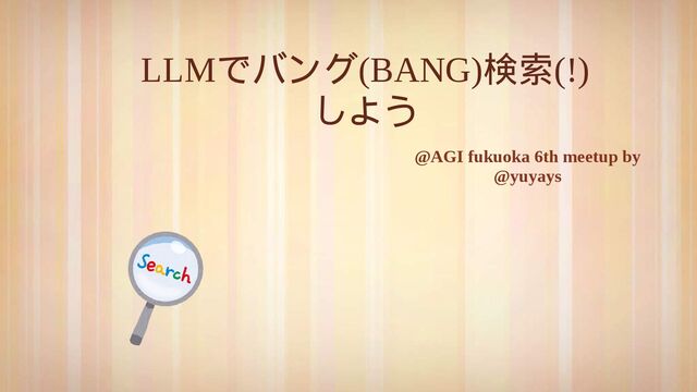 LLM でバング (BANG) 検索 (!) しよう @AGI fukuoka 6th meetup