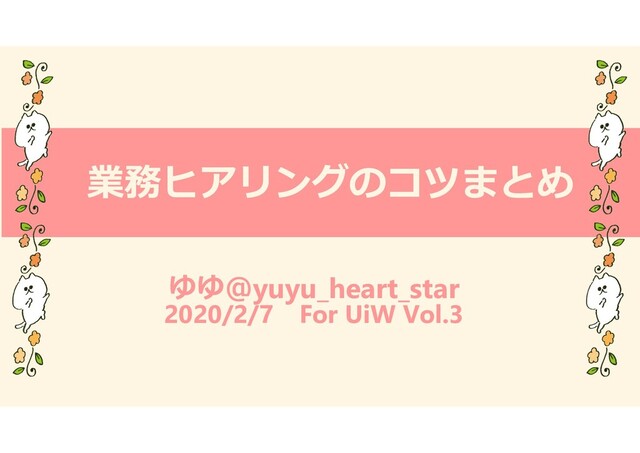 業務ヒアリングのコツまとめ ゆゆ@yuyu_heart_star 2020/2/7 For UiW Vol.3