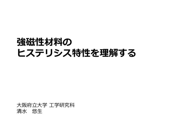 強磁性材料の ヒステリシス特性を理解する 大阪府立大学 工学研究科 清水 悠生