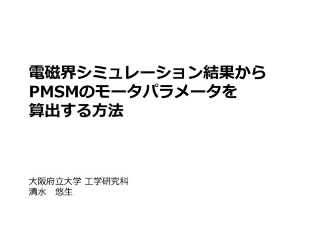 電磁界シミュレーション結果から PMSMのモータパラメータを 算出する方法 大阪府立大学 工学研究科 清水 悠生