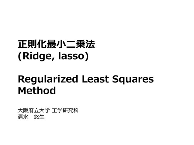 正則化最小二乗法 (Ridge, lasso) Regularized Least Squares Method 大阪府立大学 工学研究科 清水