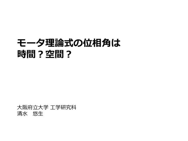 モータ理論式の位相角は 時間?空間? 大阪府立大学 工学研究科 清水 悠生