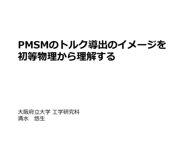 PMSMのトルク導出のイメージを 初等物理から理解する 大阪府立大学 工学研究科 清水 悠生