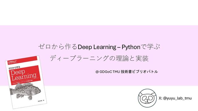 ゼロから作るDeep Learning – Pythonで学ぶ ディープラーニングの理論と実装 X: @yuyu_lab_tmu @ GDGoC TMU
