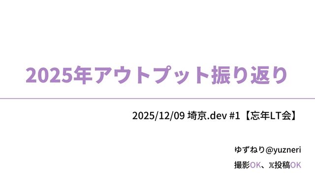 撮影OK、𝕏投稿OK ゆずねり@yuzneri 2025年アウトプット振り返り 2025/12/09 埼京.dev #1【忘年LT会】