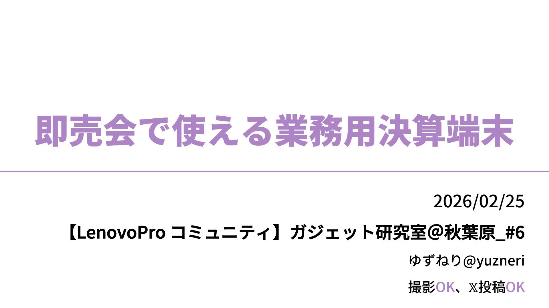 撮影OK、𝕏投稿OK ゆずねり@yuzneri 即売会で使える業務⽤決算端末 2026/02/25 【LenovoPro コミュニティ】ガジェット研究室@秋葉原_#6