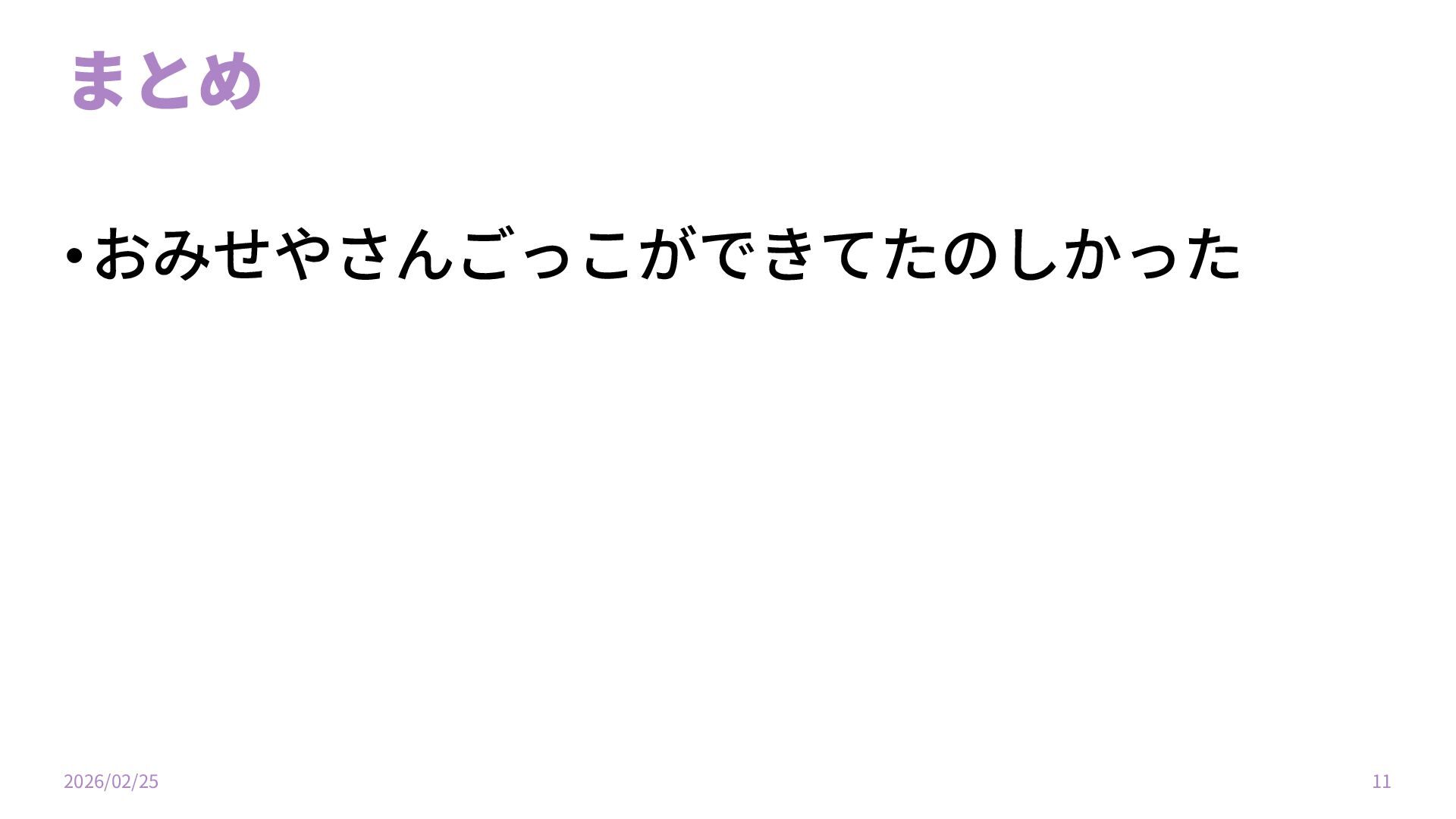 まとめ •おみせやさんごっこができてたのしかった 2026/02/25 11