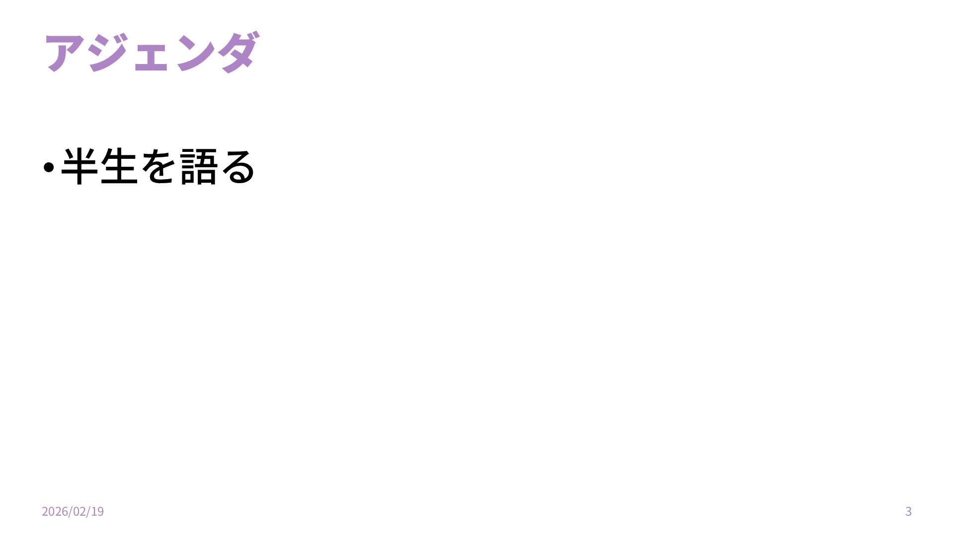 アジェンダ 2026/02/19 3 •半⽣を語る