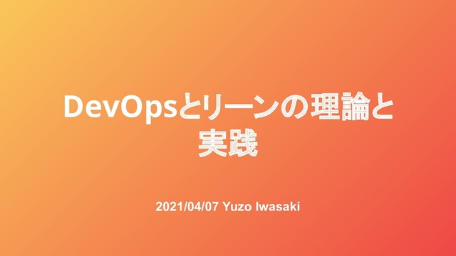 DevOpsとリーンの理論と 実践 2021/04/07 Yuzo Iwasaki