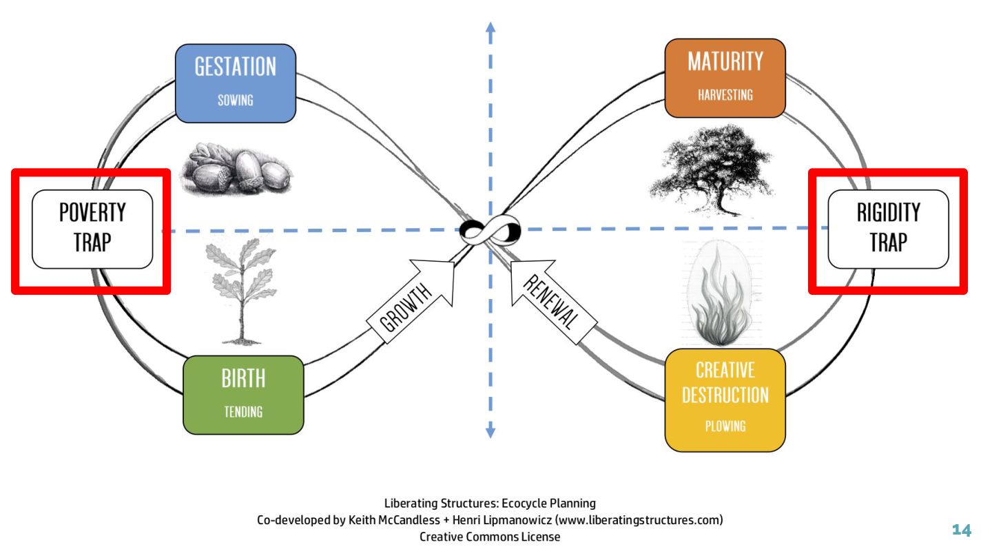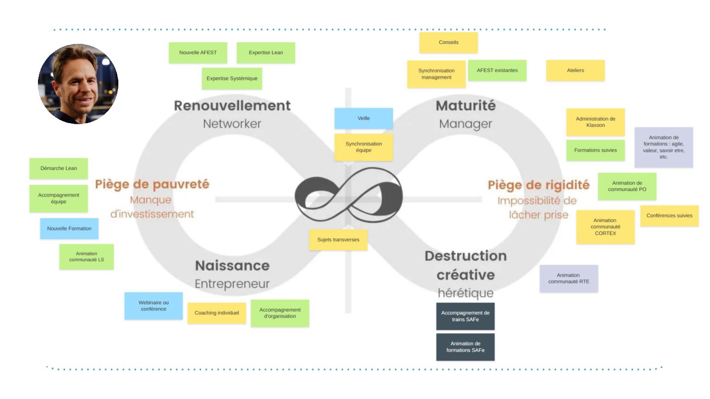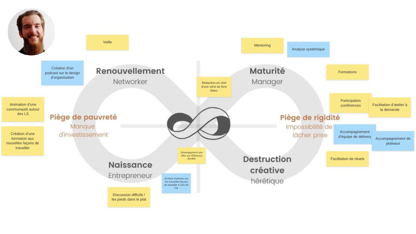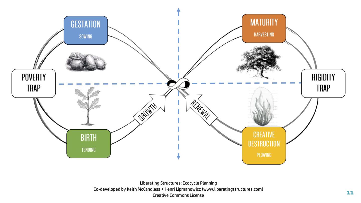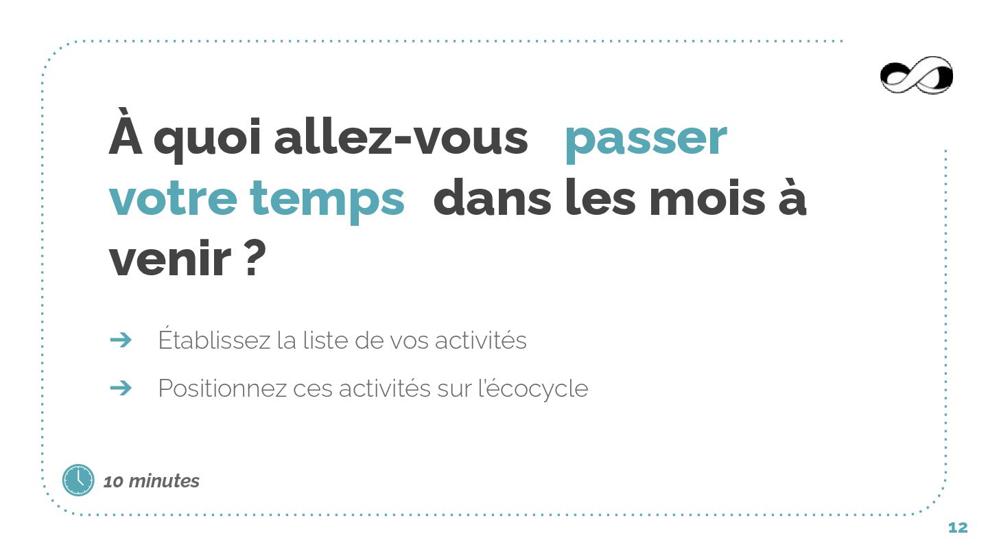 Cet atelier vous propose un moment de réflexion personnelle et collective grâce à l’écocycle planning, une liberating structure éprouvée, pour cartographier vos activités actuelles et révéler les opportunités concrètes.
