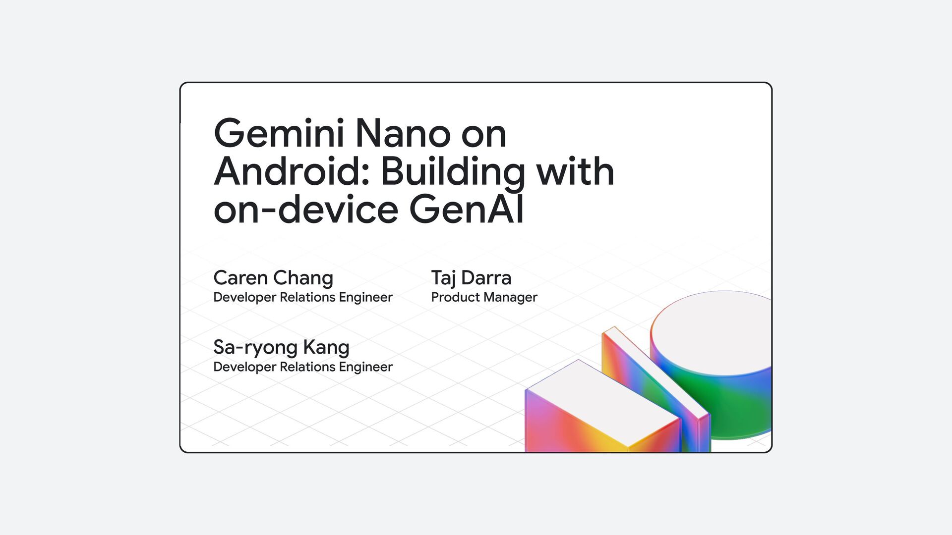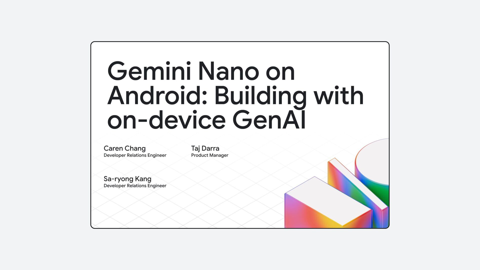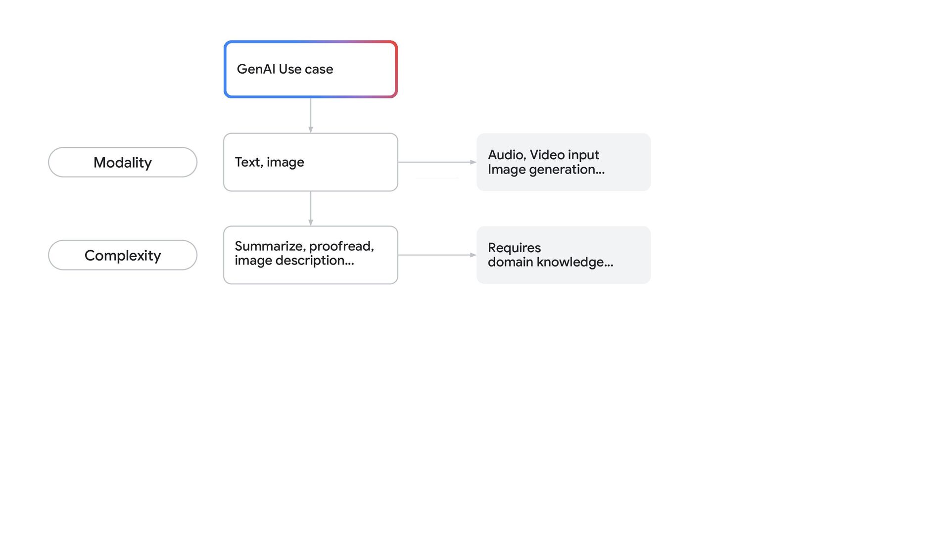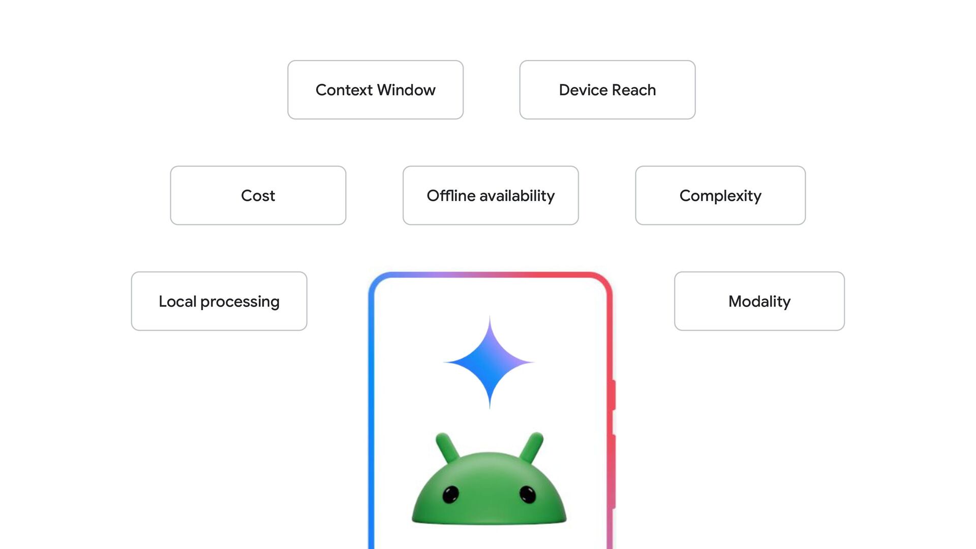 Image generation… Requires domain knowledge… Extensive documents, hours of audio/video… Audio, Video input Image generation On-device GenAI (Gemini Nano) Short input and output Summarize, proofread, rewrite… Text, image GenAI Use case Modality Complexity Context Window