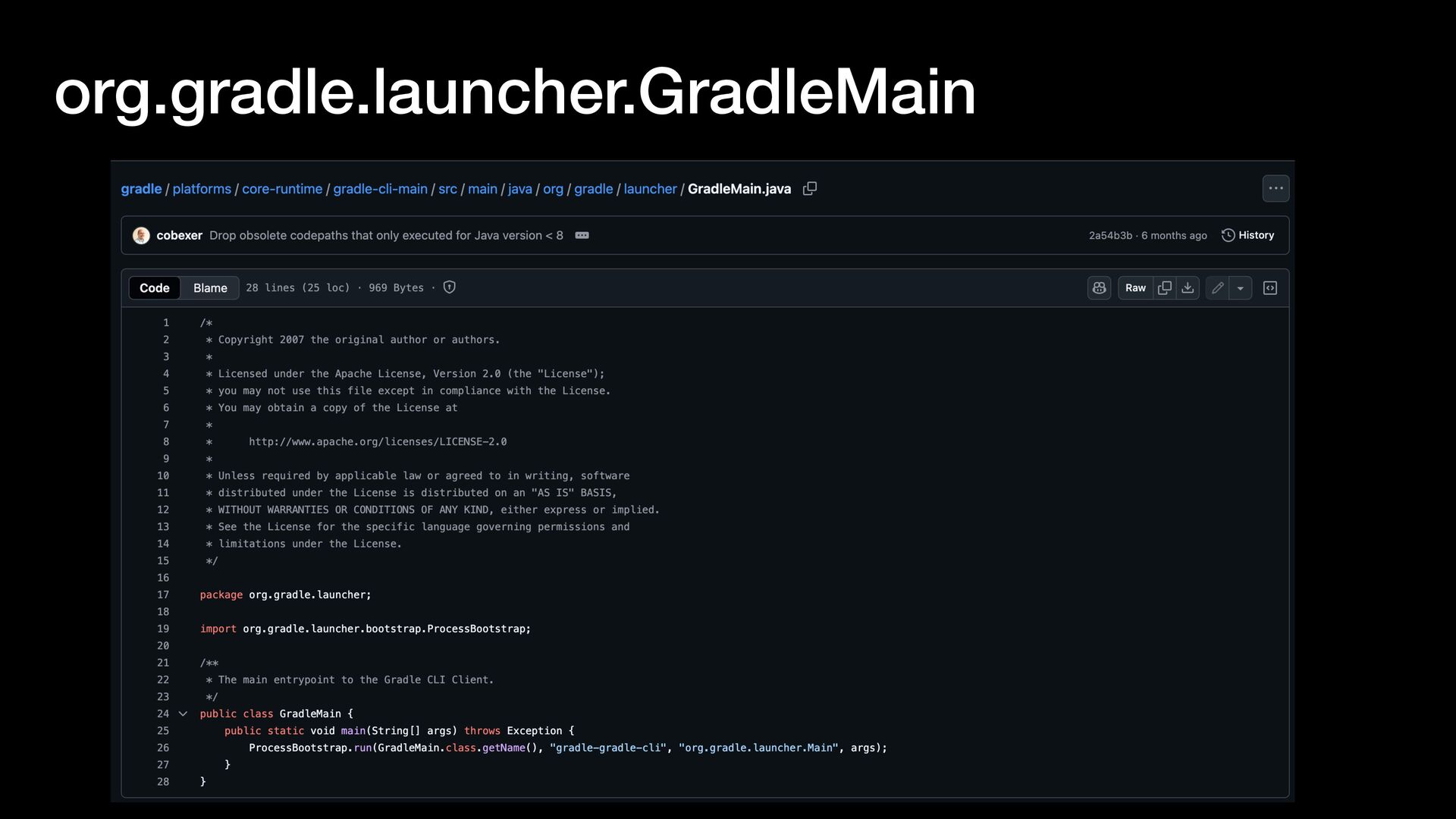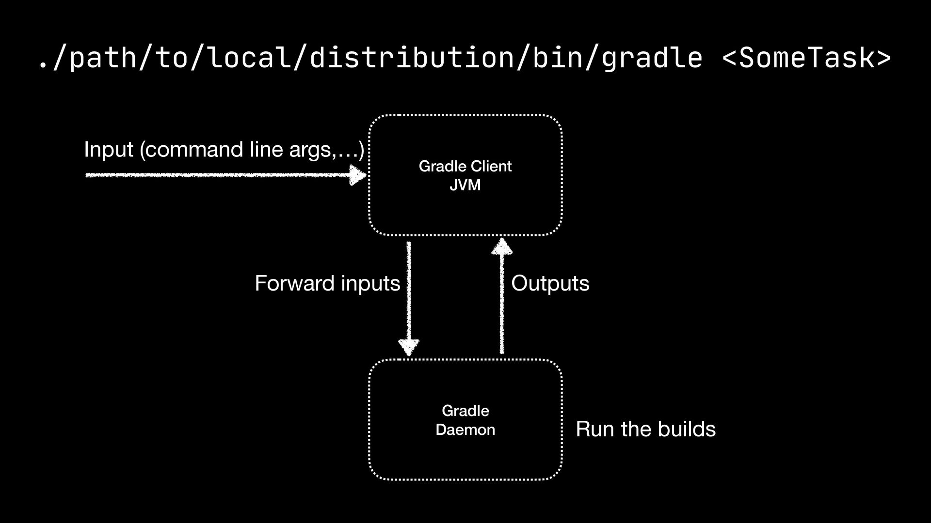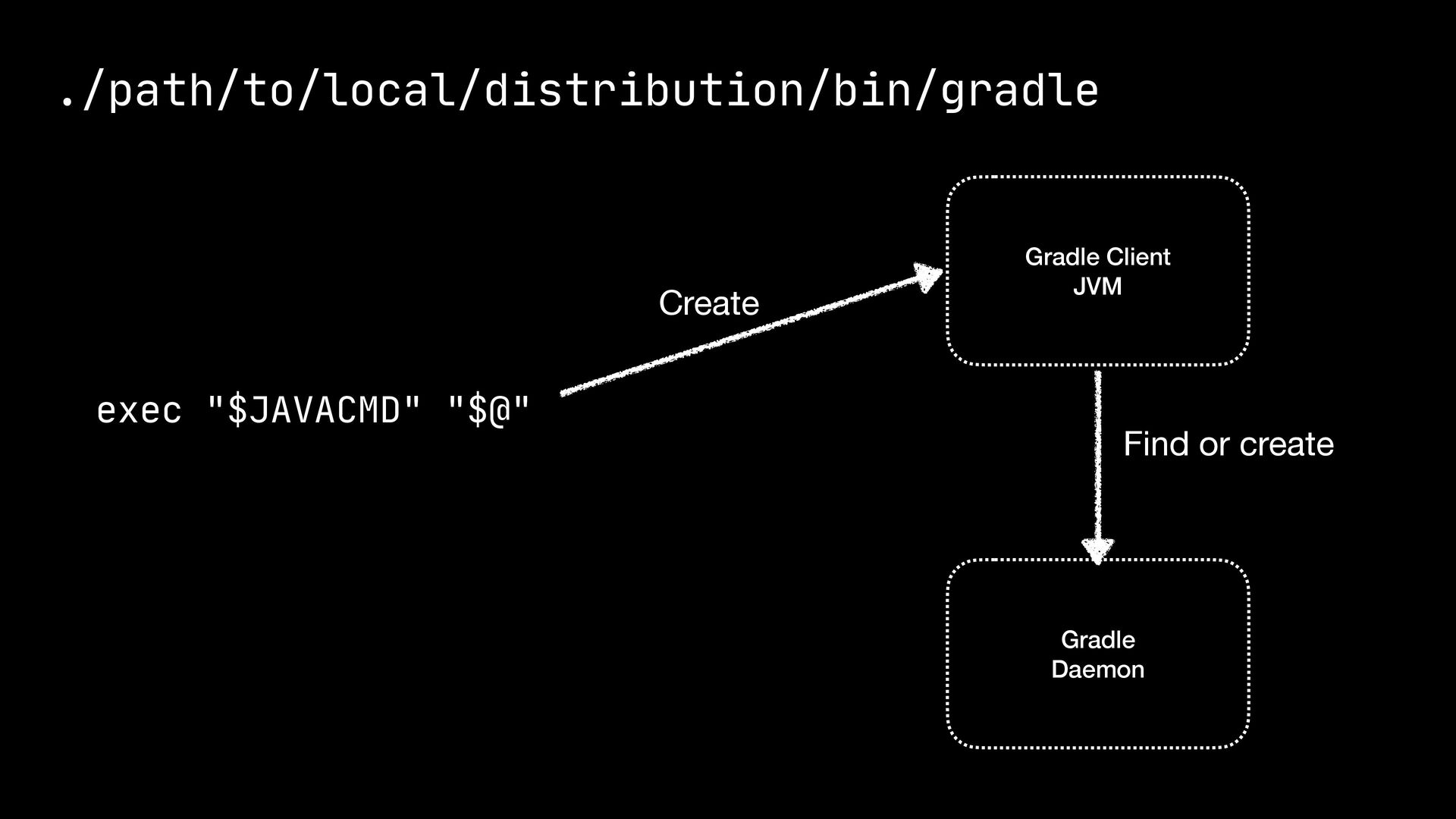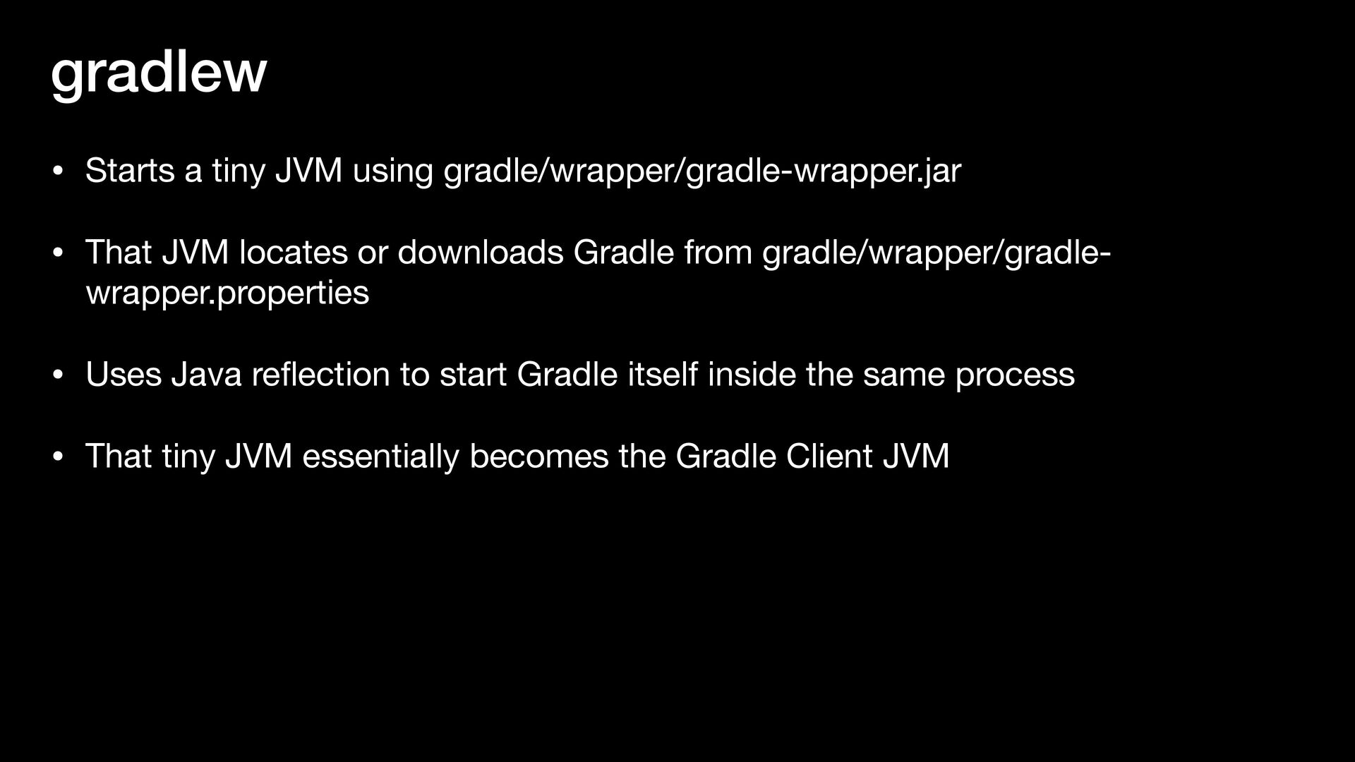 JVM locates or downloads Gradle from gradle/wrapper/gradle- wrapper.properties • Uses Java re fl ection to start Gradle itself inside the same process • That tiny JVM essentially becomes the Gradle Client JVM