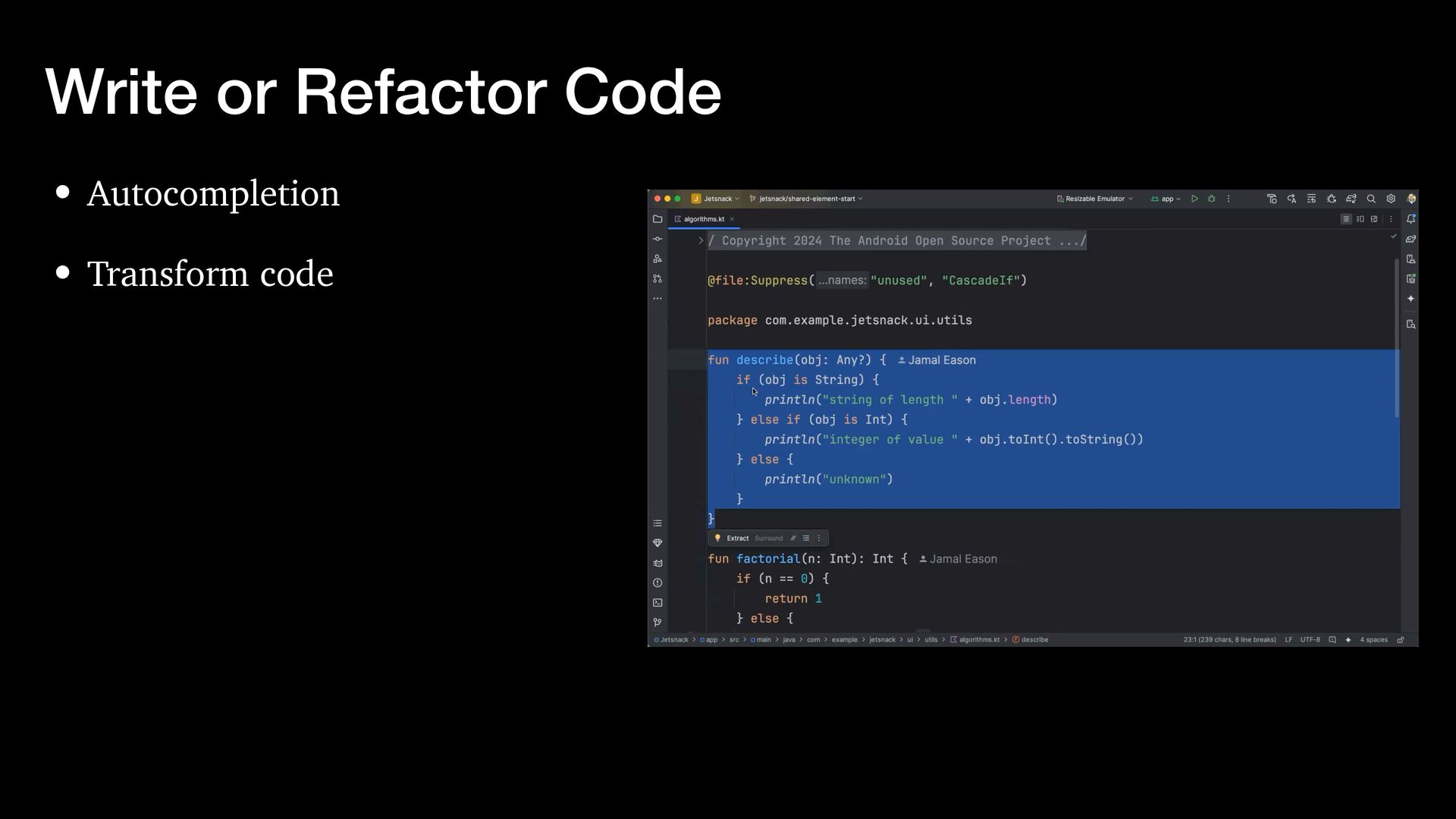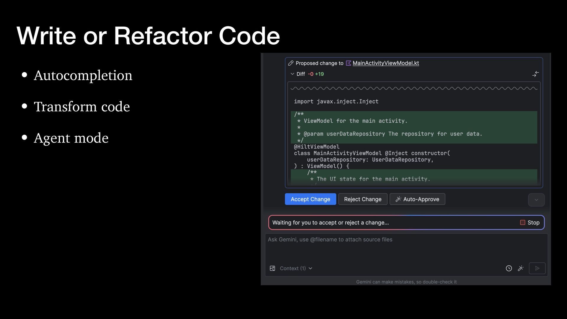In this talk, we’ll explore the latest features of the AI in Android Studio and see how it can simplify everyday tasks. We’ll showcase how it handles complex, multistep workflows like refactoring large codebases, generating and running tests, updating dependencies, and fixing stubborn build errors.