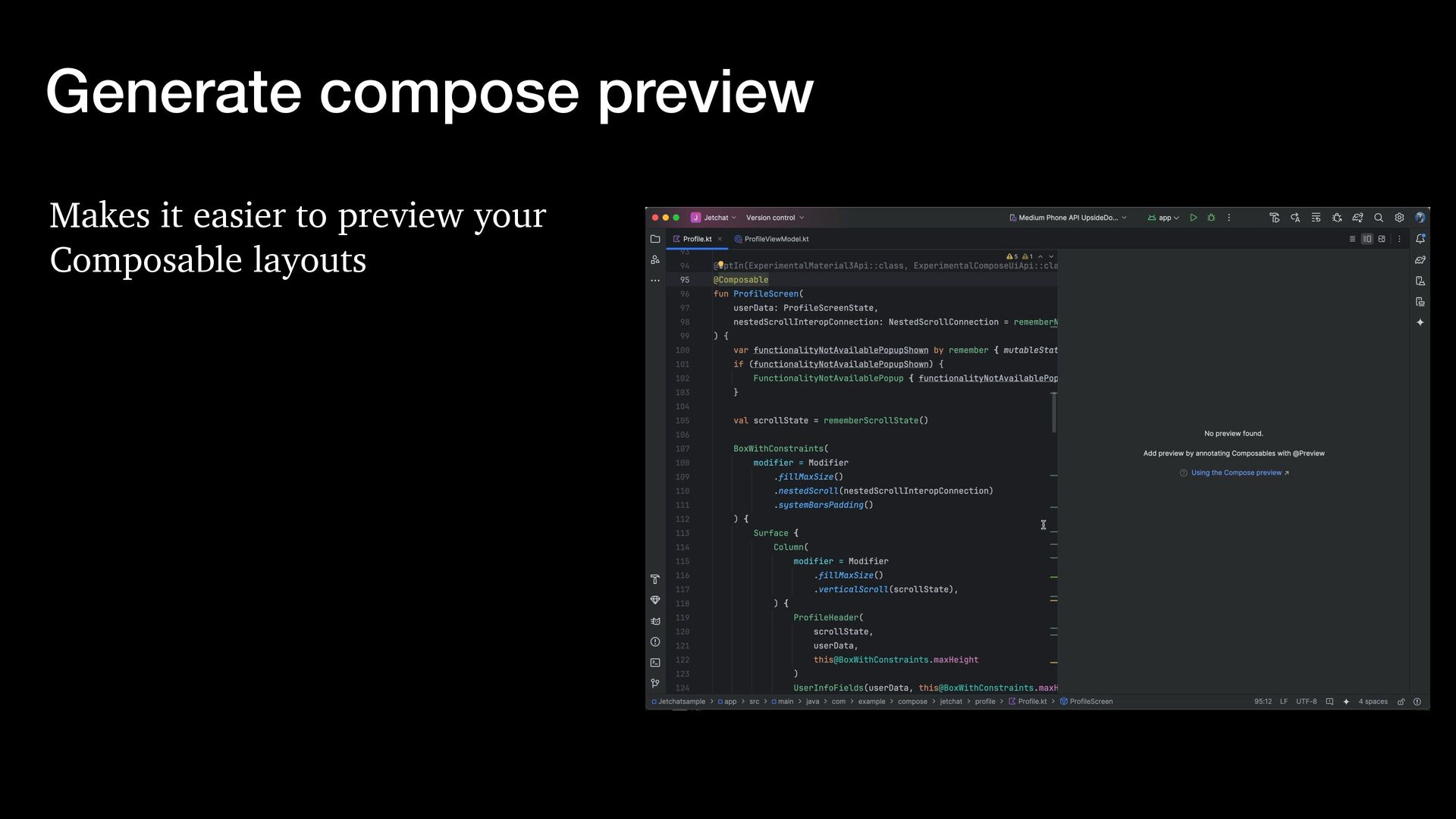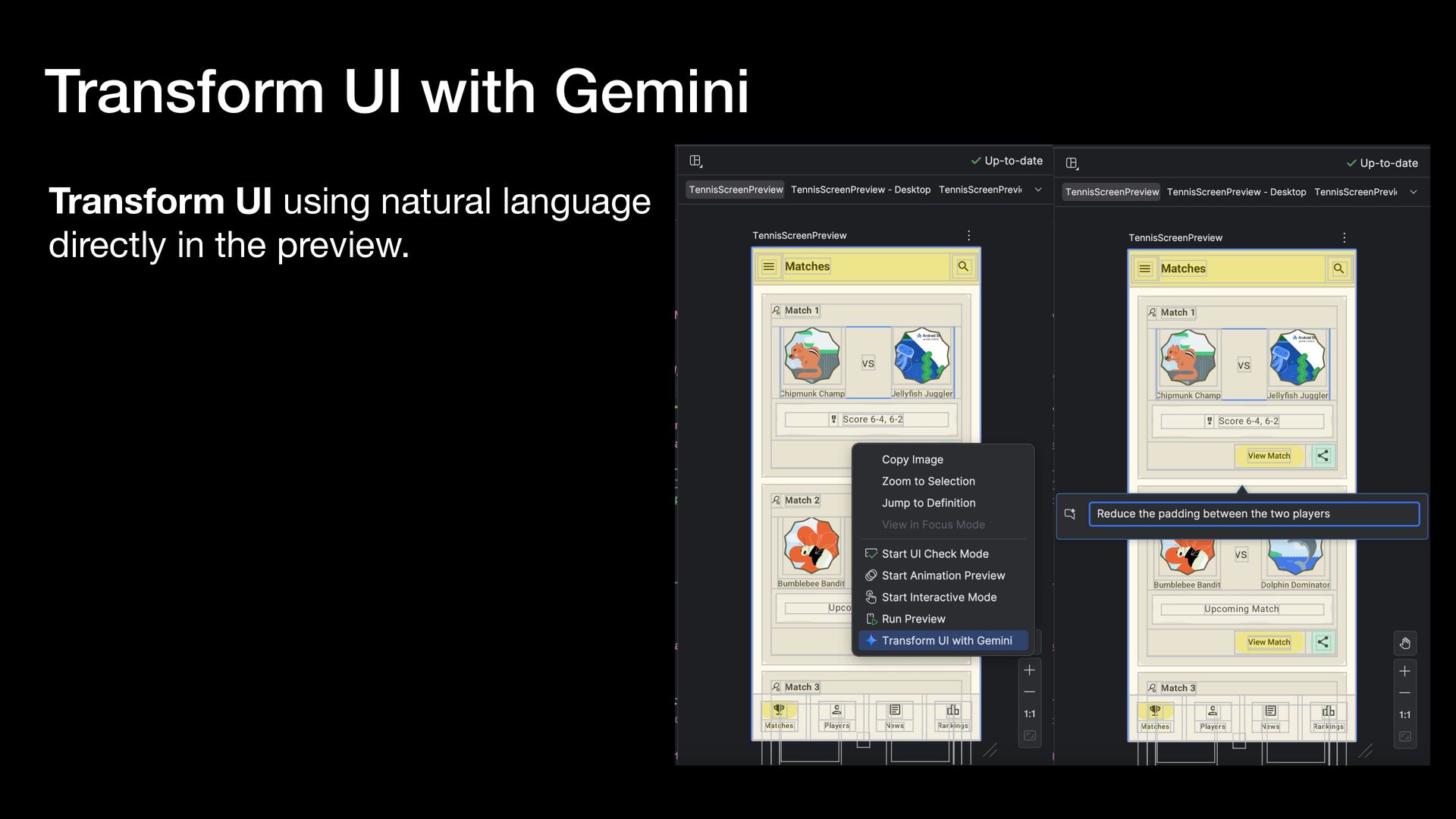 We’ll also dive into its UI-focused capabilities: instantly turning visual designs and screenshots into production-ready Jetpack Compose code, transforming UIs with natural language commands in the Compose Preview, generating previews with realistic sample data, and even suggesting accessibility fixes or adaptive layouts.