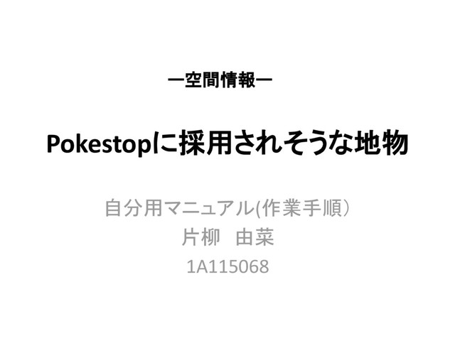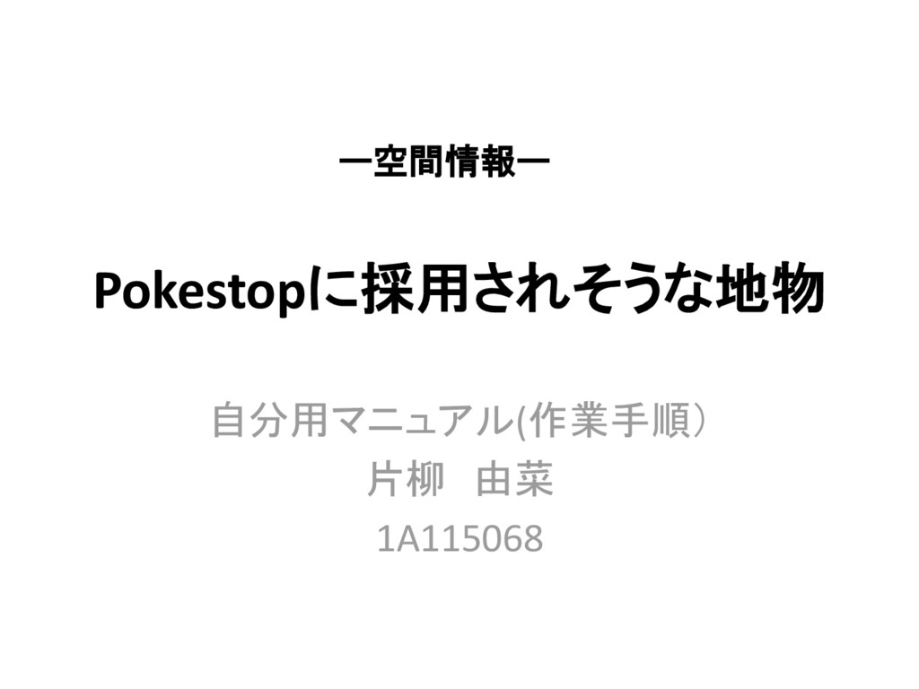 Pokestopに採用されそうな地物 自分用マニュアル(作業手順) 片柳 由菜 1A115068 ー空間情報ー