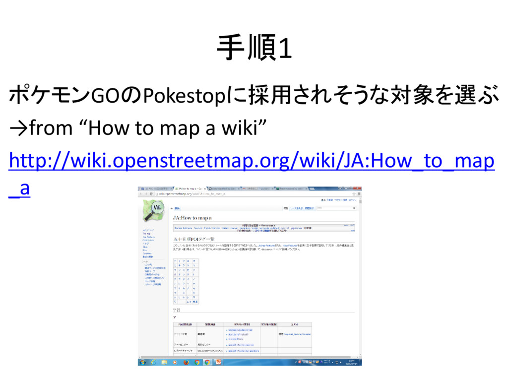 手順1 ポケモンGOのPokestopに採用されそうな対象を選ぶ →from “How to map a wiki” http://wiki.openstreetmap.org/wiki/JA:How_to_map _a