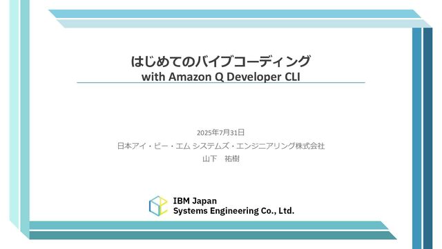 はじめてのバイブコーディング with Amazon Q Developer CLI 2025年7月31日 日本アイ・ビー・エム システムズ・エンジニアリング株式会社 山下