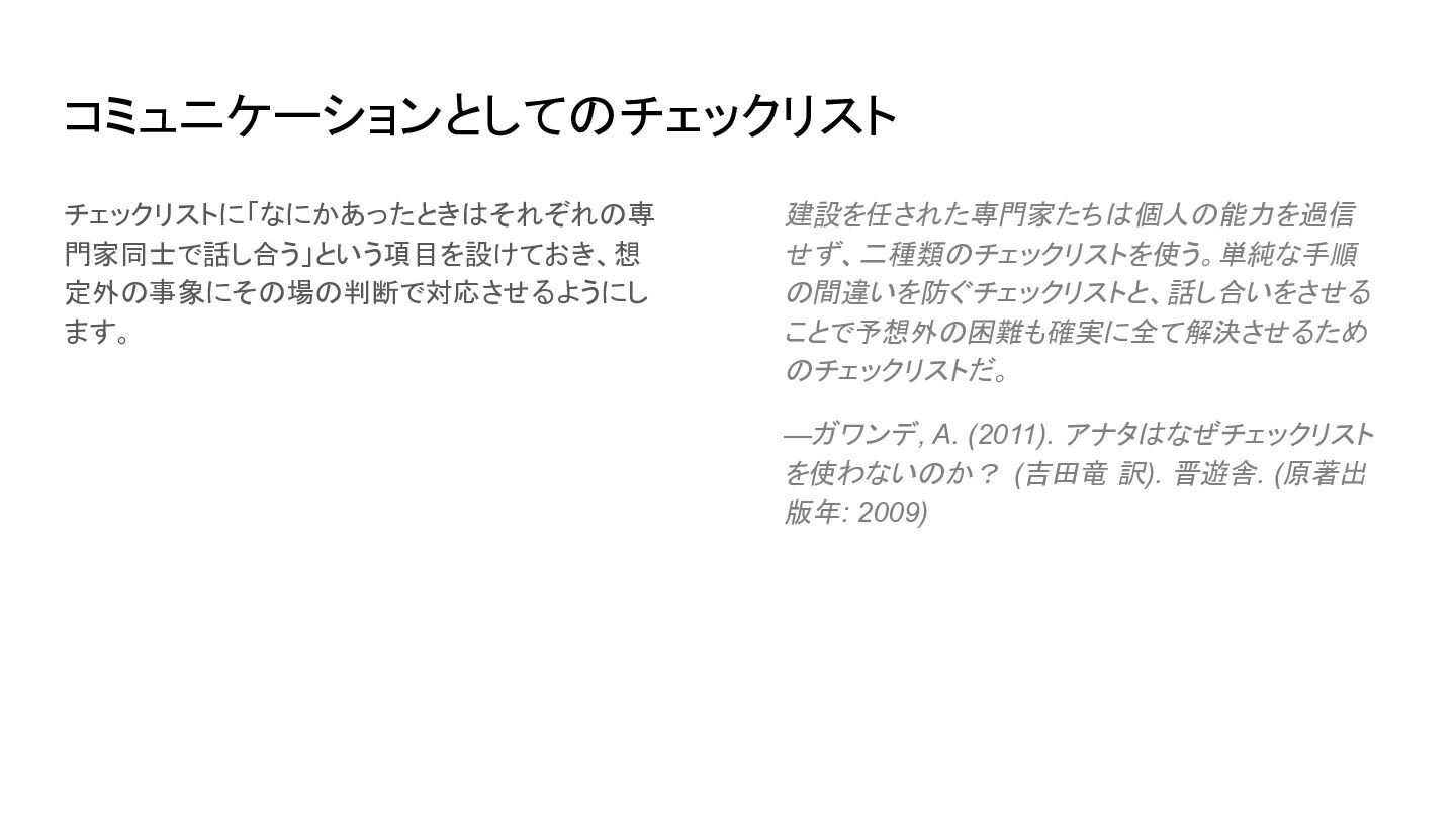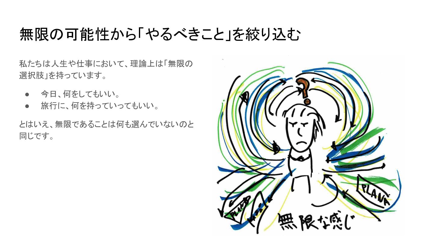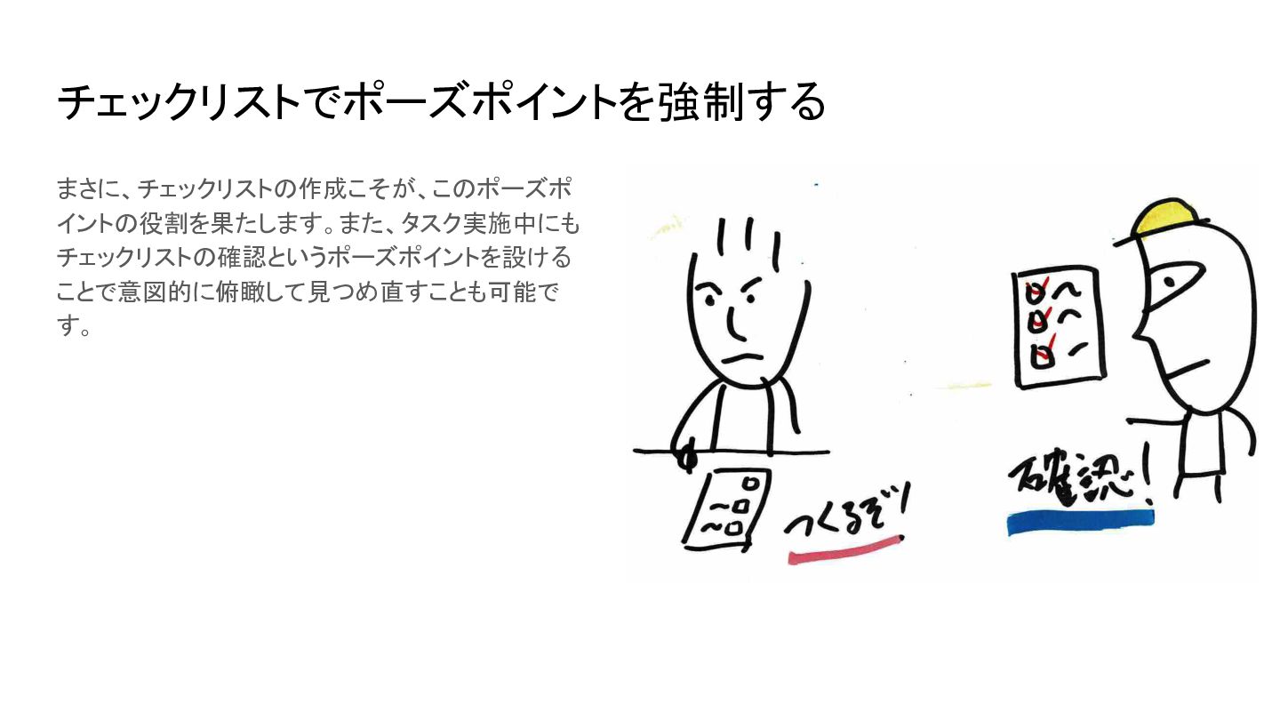 https://www.apa.org/topics/research/multit asking 2. Blades, S. (2017, Fall). The multitasking mirage: More is not always better. The Higher Education Workplace, 4–7. https://www.cupahr.org/wp-content/upload s/KC/heworkplace/Multitasking_Vol9No2.p df 人は案外動きながら考えるのが苦手 • 人間の脳のアーキテクチャーは基本的に直 列処理。並列処理は物理的にできず、タスク を切り替えている(コンテキストスイッチ) • コンテキストスイッチにはコストが伴う [1] • 複数の認知タスクを並行して行うと IQを一次 的に10〜15ポイント(睡眠不足や薬物使用 と同等レベルに)低下させることもあるらしい [2]